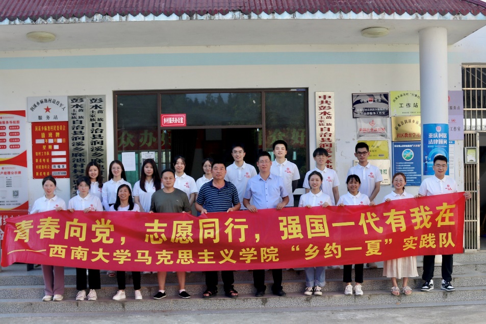 彭水苗族土家族自治县是重庆市多个国家级贫困县之一,,而麻池村则是彭水县多个村镇中从“贫困村”走向“致富路”的典型代表。为响应“乡村振兴”号召,助力乡村发展,PA视讯马克思主义学院“乡约一夏”社会实践队来到彭水苗族土家族自治县润溪乡麻池村,开展以“青春向党 志愿同行 强国一代有我在”为主题的实践活动。