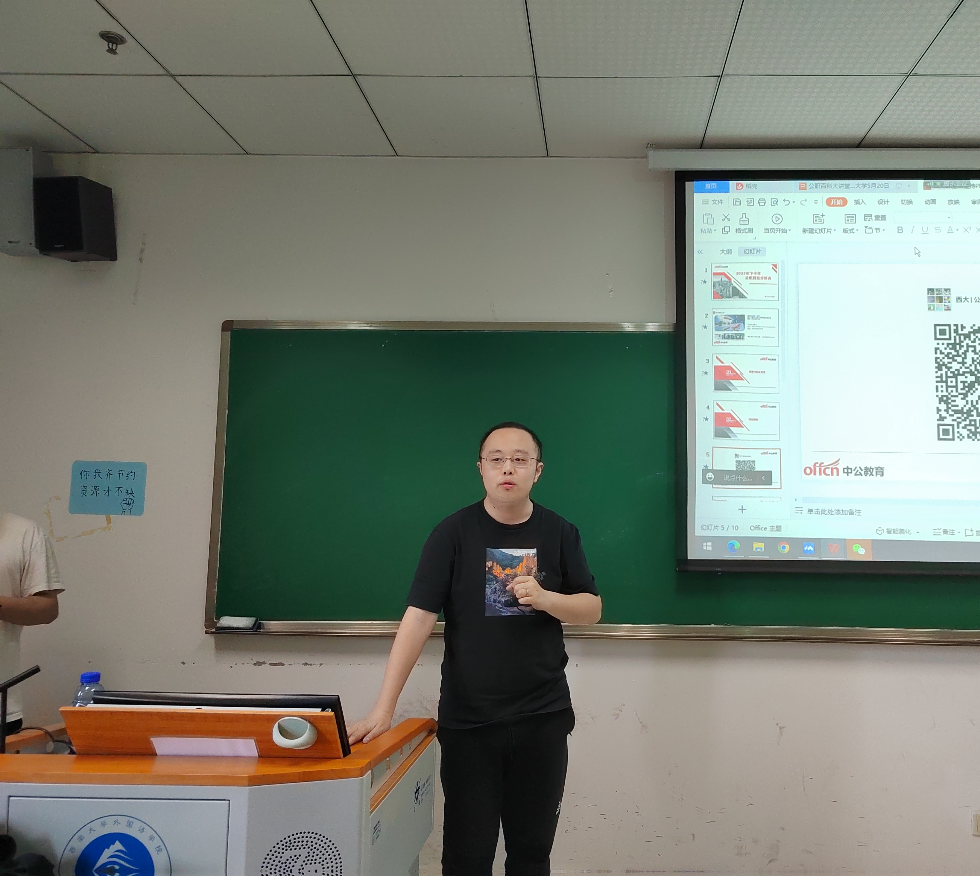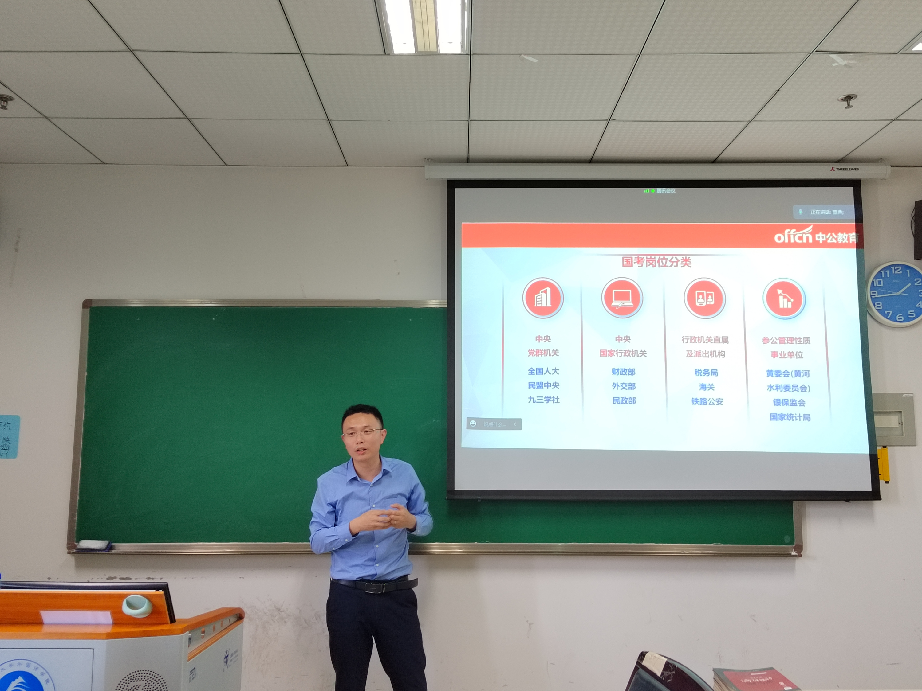 为帮助研究生系统地了解公考信息,获取公职就业的最新资讯,5月20日下午,学院邀请中公教育何志龙老师于507教室开展了题为“2022年下半年公职就业分析会”讲座。研究生辅导员董典及线上线下四十余名研究生参会。