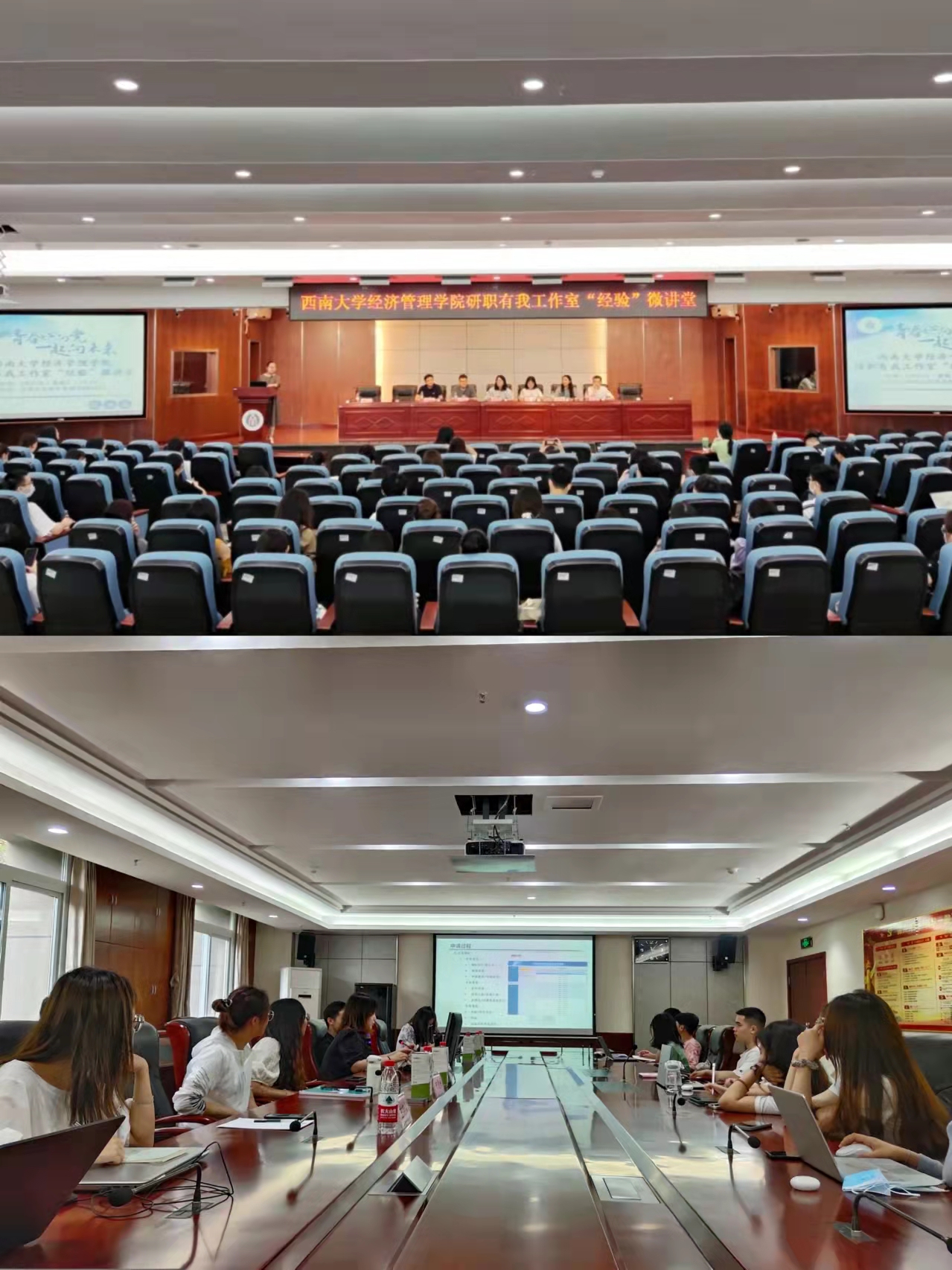 为充分发挥优秀毕业生的典型示范作用,加强经济管理学院各年级学生的相互交流,引导学生认清就业形势,做好职业生涯规划。5月31日下午15:00,学院研职有我工作室“经验”微讲堂就业专场和升学专场分别在B401和A204举行。学院2019级硕士研究生谈浩、钱星宇、宗泽、祝露西、朱成霞和叶晟担任就业专场分享人;学院2019级研究生欧阳鑫、胡梦佳、何雯妤、杨珂凡和张可欣担任升学专场分享人。学院组织员钱璐、研究生辅导员任娟以及2020级、2021级研究生参加了此次活动,活动分别由学院2020级硕士研究生戴孟月和韩威鹏主持。