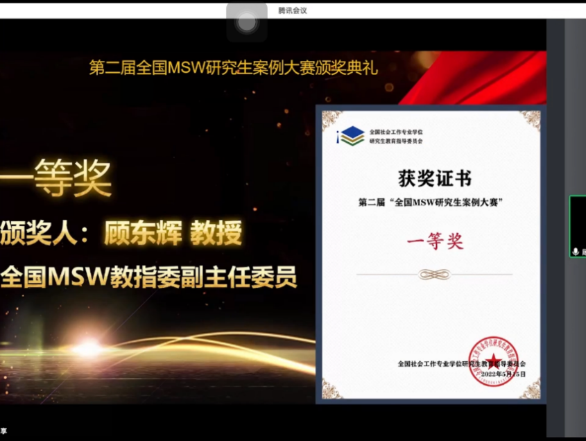 据悉,本次大赛共收到来自北京大学、中国人民大学、复旦大学等120家MSW研究生培养单位的280支参赛团队报名参赛。参赛案例紧紧围绕社会工作领域的实际问题,涉及儿童、青少年、老年、妇女、残疾人、家庭、社区、医务等社会工作的诸多领域,代表了我国MSW研究生案例撰写的最高水平。大赛分初赛和决赛两个阶段,大赛评委秉承质量优先、总量控制的原则匿名遴选出全国百强案例,其中排名前36位的案例获得决赛资格。PA视讯社会工作专业硕士教育凭借运用扎实的理论和方法体系,解决社会服务中“本土化”的问题,自大赛举办以来,连续两届累计4个案例入选百强案例,充分体现我校社会工作专业在培养应用型高素质人才方面所取得的成效,有力助专业硕士研究生教育高质量发展,完善校企产学研一体化模式,服务地方社会发展。