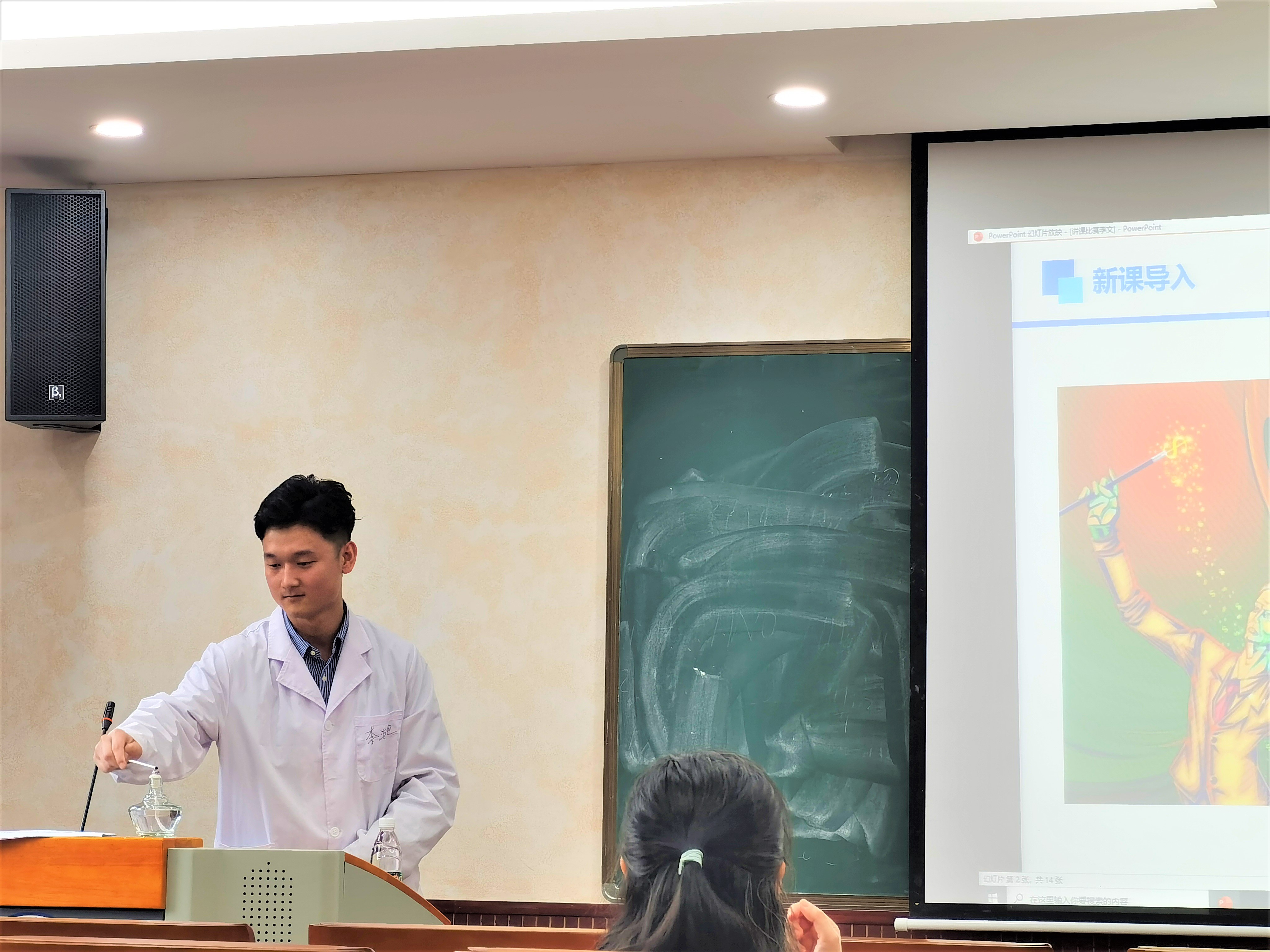 比赛过程精彩又激烈,参赛选手各显神通。选手们教案规范、教态得体,展示出了良好的精神面貌和精湛的教学技能。选手们合理地利用音视频展示、特例分析、现场实验演示等方式,开展以多媒体为辅助的多元化教学。选手们用幽默的比喻,真实的案例,现场实验的视觉冲击将化学知识声情并茂地向在场评委及观众展示并讲解,并以精彩的课堂设计、沉稳从容的讲授及与学生积极良好的互动赢得评委和观众的热烈掌声。
