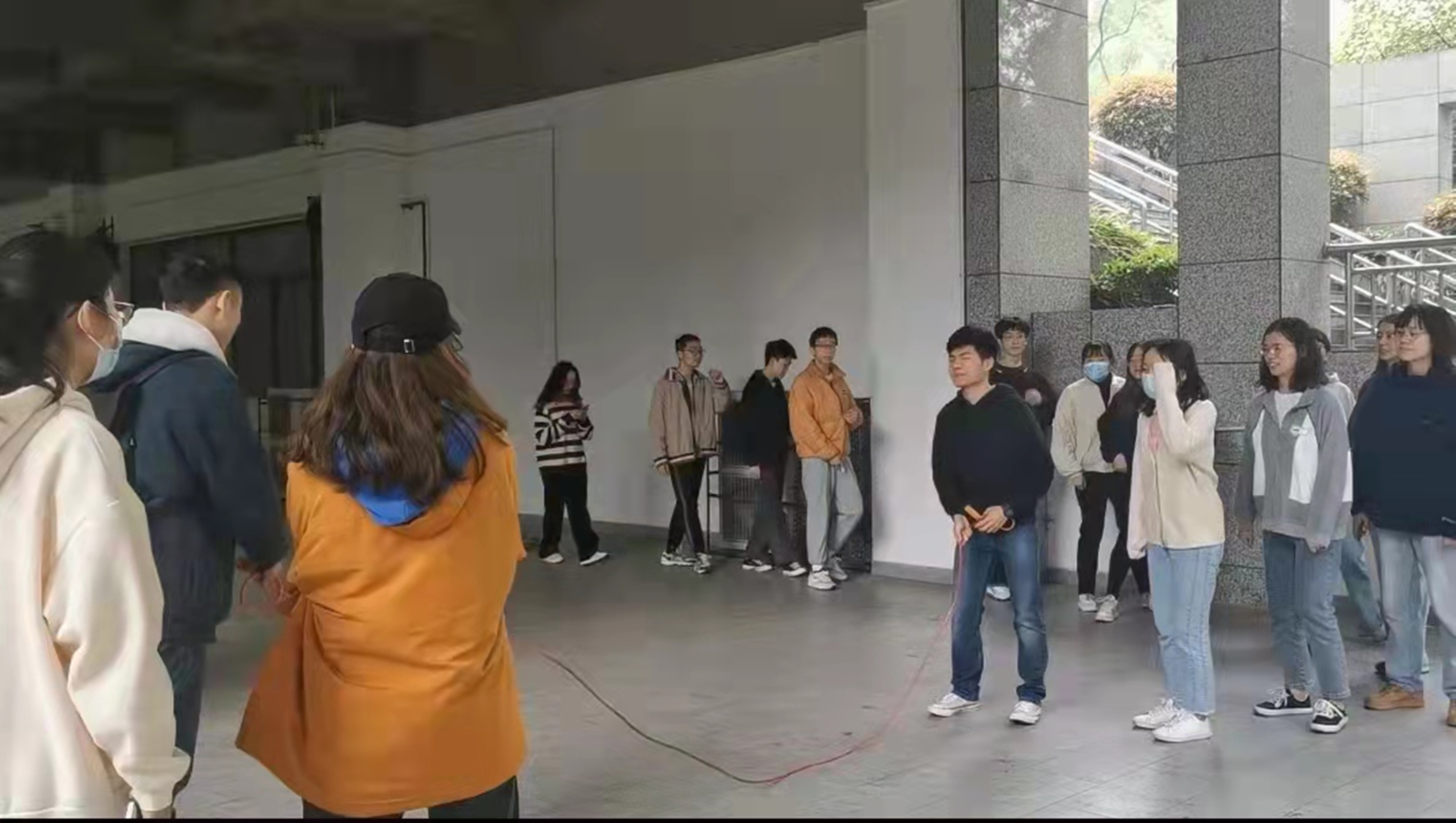 集体跳绳:长绳在空中划出一道道优美的弧线,同学们轻盈的身影穿梭其中,欢声笑语中诠释着团结与默契。