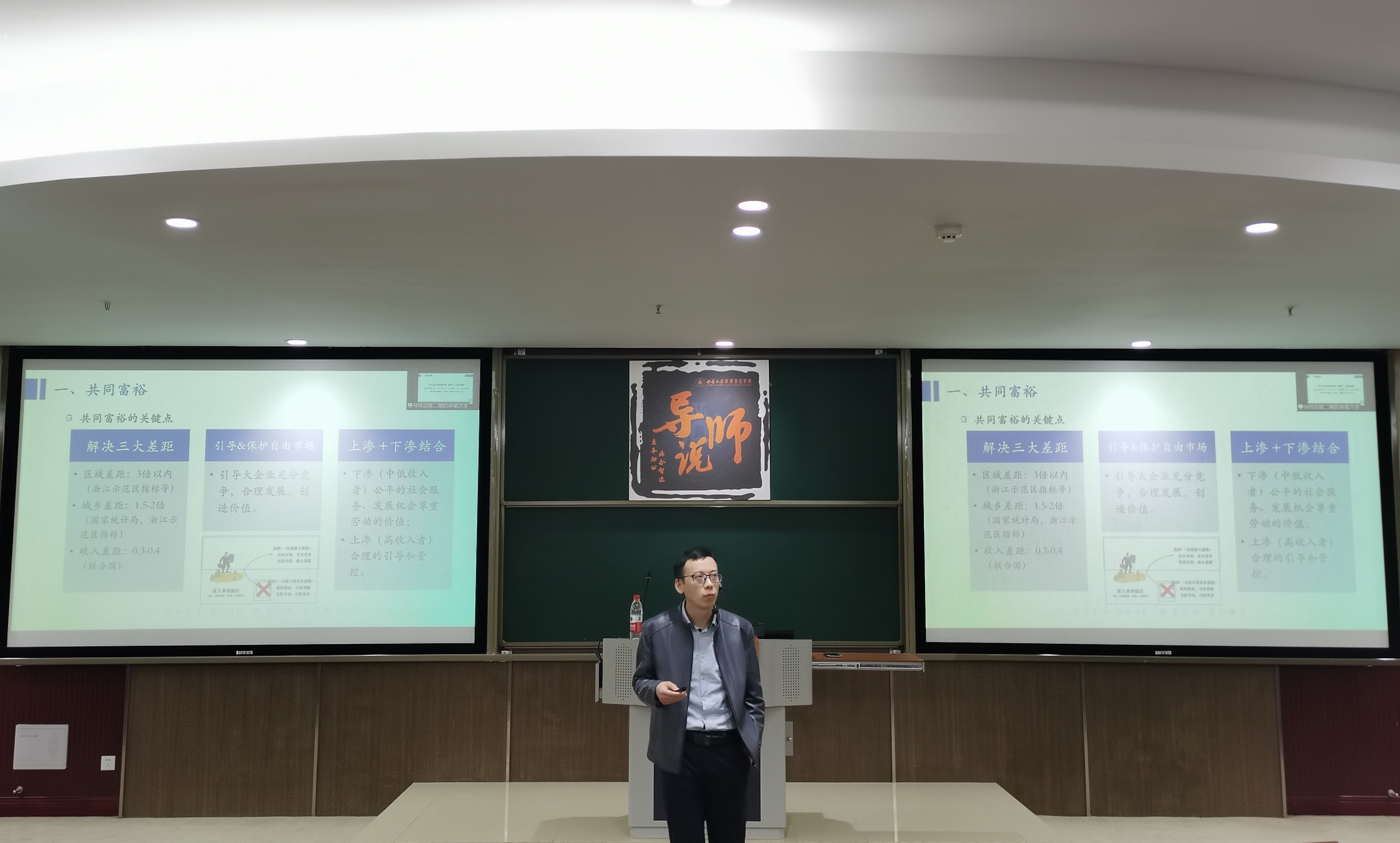 分享会上,同学们就“二氧化碳加氢制汽油是否会促进双碳目标”“‘房票’提案对社会的影响”和“区域农户微观研究”等问题积极提问,刘老师从多个角度对同学们的提问逐一进行了解答。同学们纷纷表示,刘老师对于共同富裕与双碳目标的分享,讲得非常清晰,给大家留下了深刻的印象和思考。