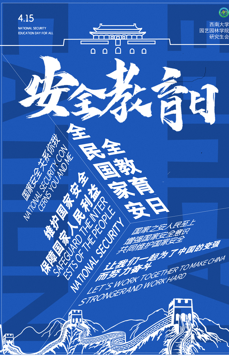 在第七个全民国家安全教育日来临之际,园艺园林学院研究生会开展了主题为“树牢总体国家安全观,感悟新时代国家安全成就”的系列活动,为迎接党的二十大胜利召开营造良好氛围。