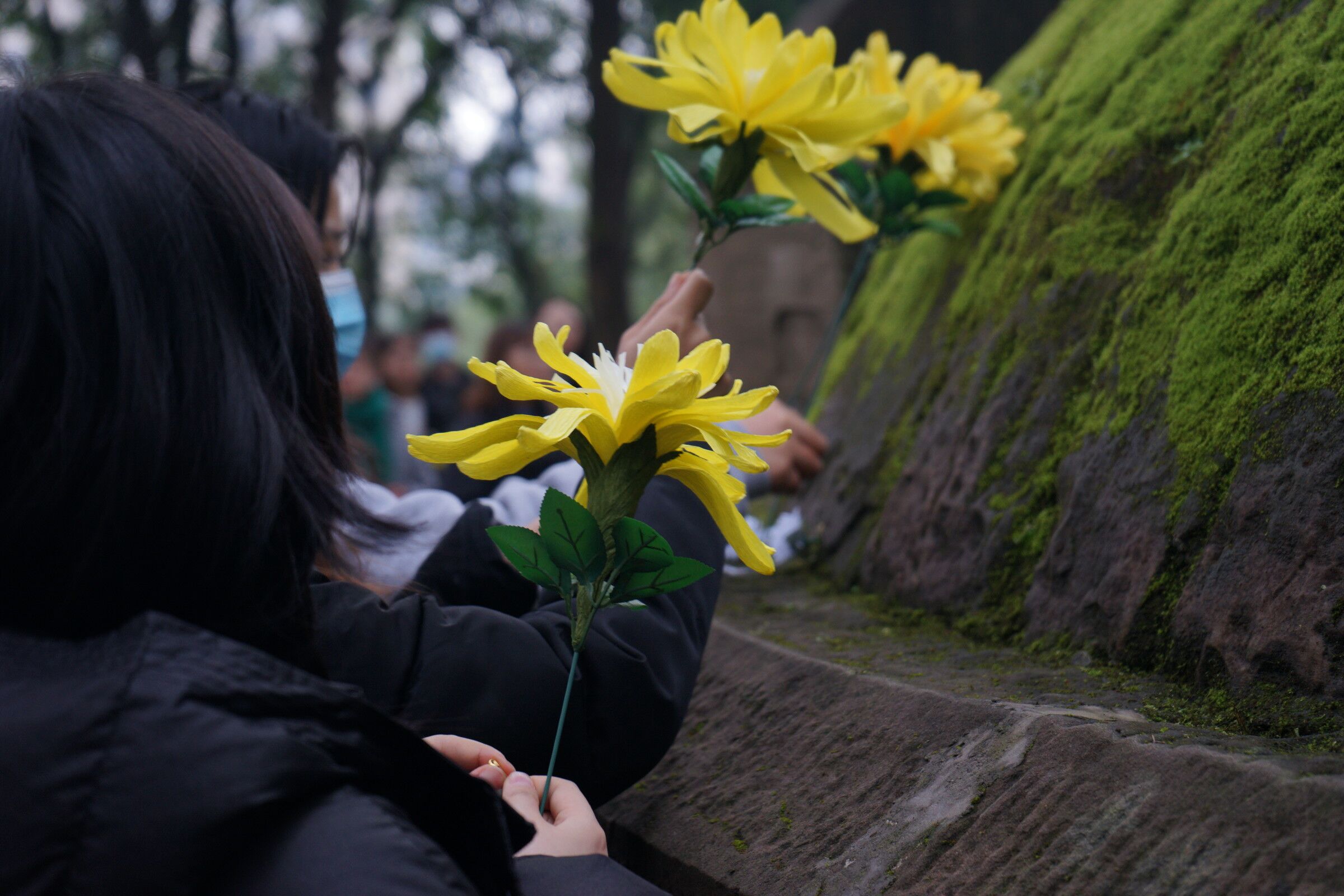 而后,在工作人员的带领下,同学们佩戴白色祭奠胸花,携带自制纸菊花前往张自忠烈士陵园举行祭扫仪式。同学们以支部为单位列队于陵墓前,学生代表杨晓代表全体同学献花,主持人张继升献读祭词,以表追思之情。