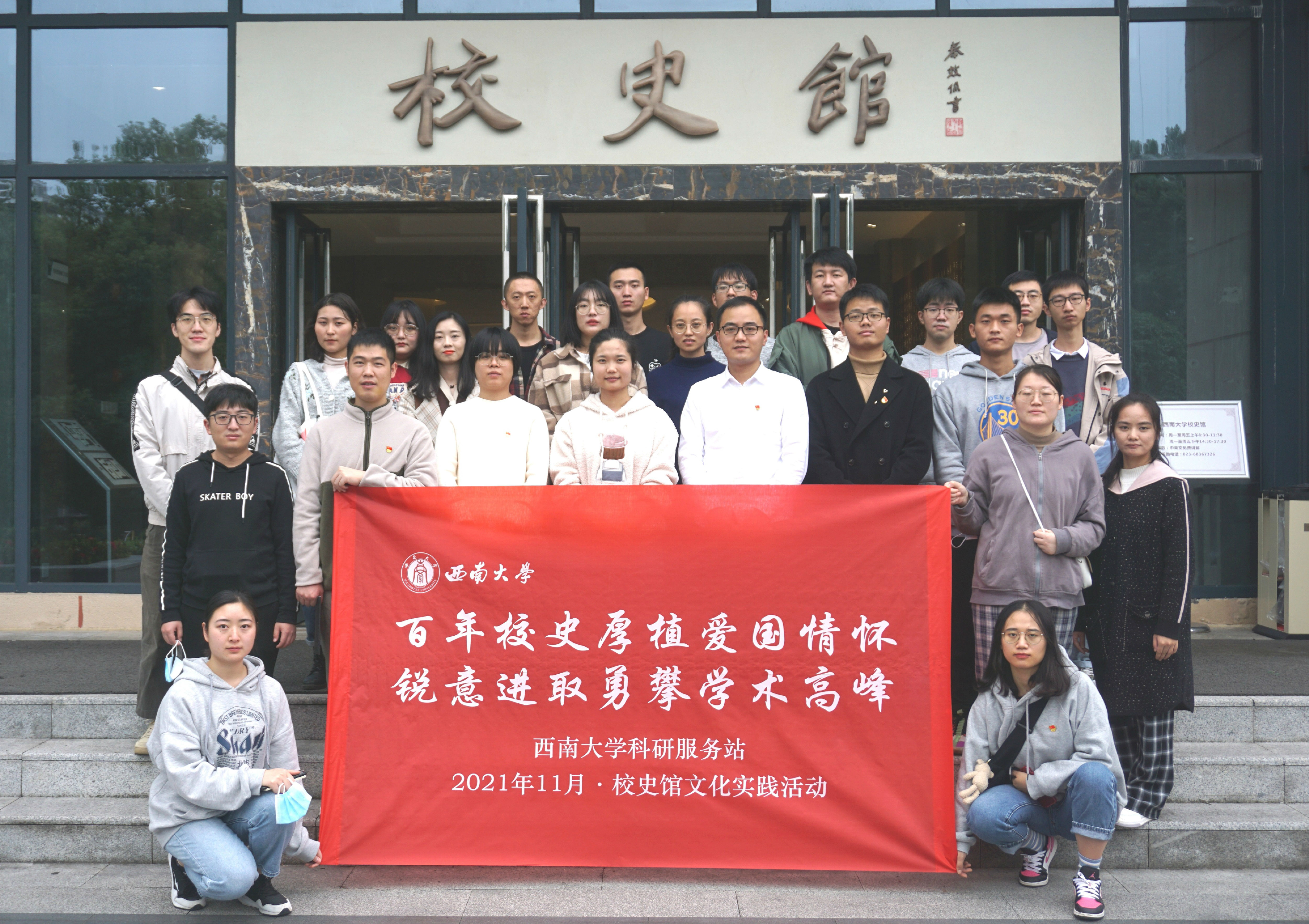 图3:PA视讯科研服务站全体成员在校史馆门口合影