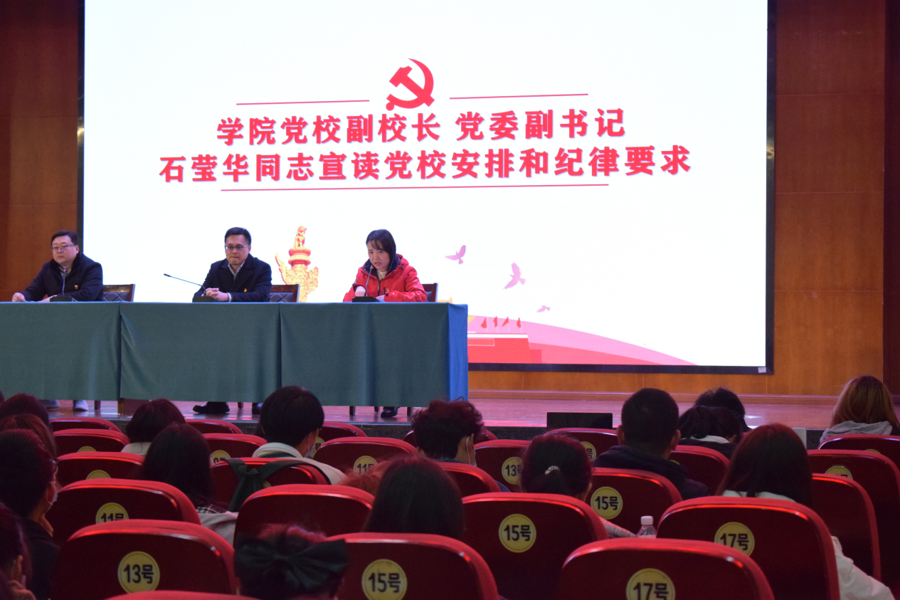 典礼在雄壮的国歌中拉开帷幕。首先,蒋寒同志作动员讲话,他指出在党校学习最重要的三个问题是“是什么,干什么和怎么干”。党校“是什么”,党校从中国共产党建立之初一直延续至今,一直是我党培养干部和后备力量的地方;而对于“干什么”,蒋寒同志认为学员应认真学习党的理论知识,从而正确认识党,树立正确的政治信念;“怎么干”则是把理论和实际结合,把书本和自己做的事相结合。只有夯实信念之基,端正入党动机,坚持知行合一,才能学有所获。