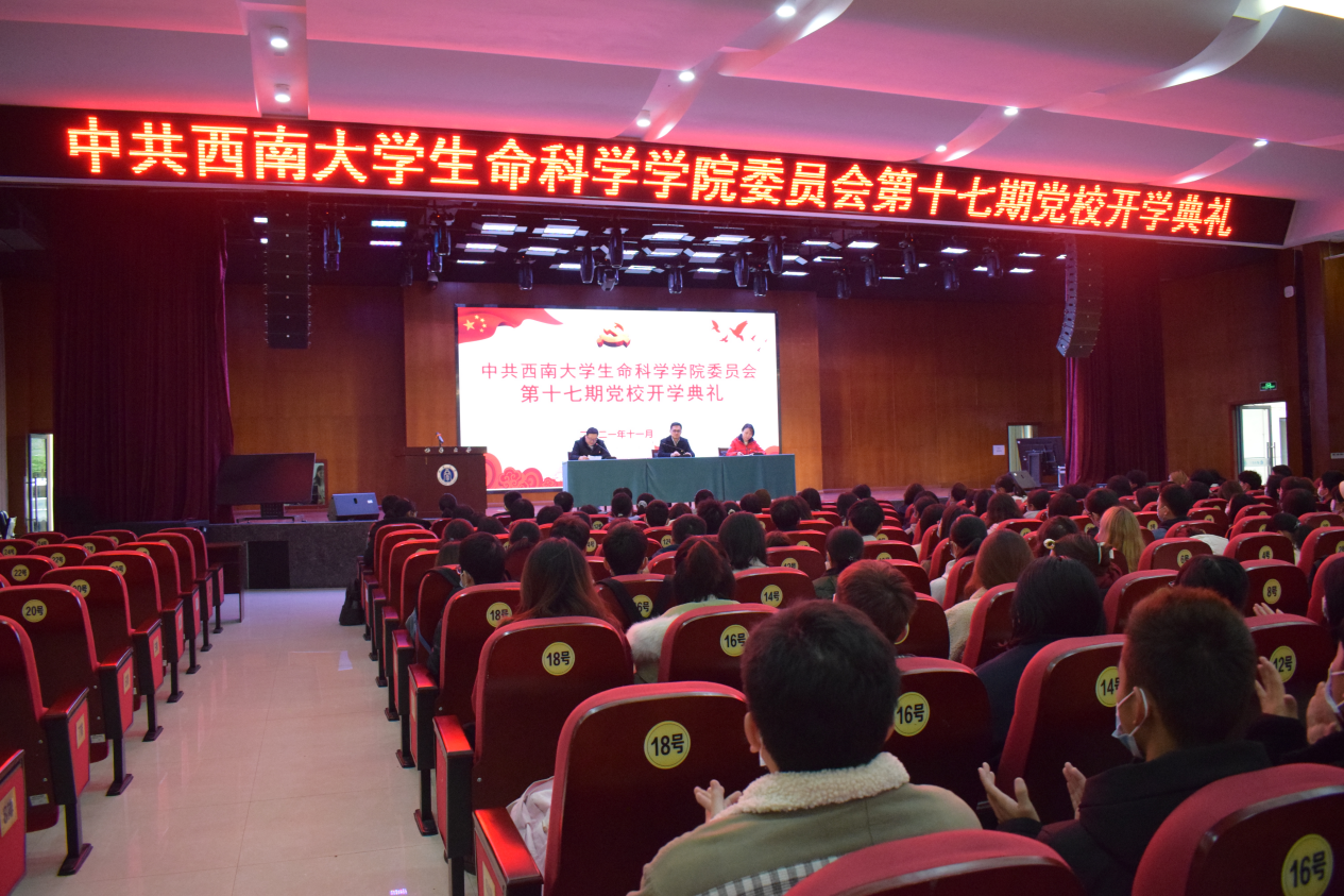 为适应新形势党建发展的要求,做好党员发展工作,响应中国共产党第十九届中央委员会第六次全体会议精神,2021年11月12日下午14:00,中共PA视讯生命科学学院委员会第十七期党校开学典礼在学生处107会议室顺利召开。参加此次会议的有学院党校校长、学院党委书记蒋寒,学院党委副书记、纪委书记陈渝,学院党校副校长、党委副书记石莹华,学院党校班主任、研究生辅导员谷彩霞以及全院190余名学员。典礼由陈渝同志主持。