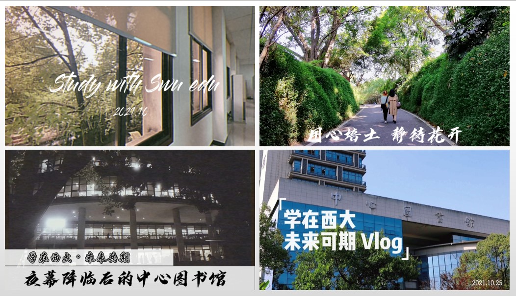 视频征集期间,同学们积极投稿,通过每一帧的记录与展示,展现学子们刻苦学习与勤奋钻研的学术品质,描绘青春年华,呈现青春力量。11月2日,经评审小组评选与线上投票推选,最终综合评审出12个优秀作品。“学在西大 • 未来共期”原创VLOG征集与展示活动完美收官。