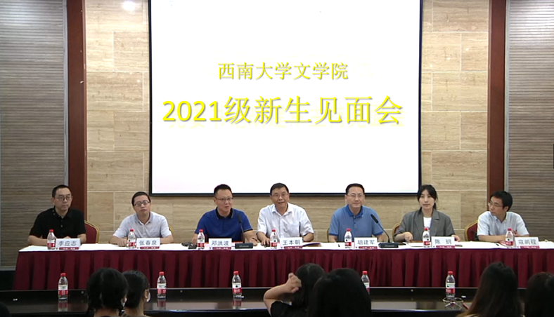9月13日上午,文学院举行2021级研究生新生见面会文学院党政领导班子、教师代表、全体辅导员和行政人员、2021级新生代表参加见面会。见面会由文学院党委书记胡建军主持。