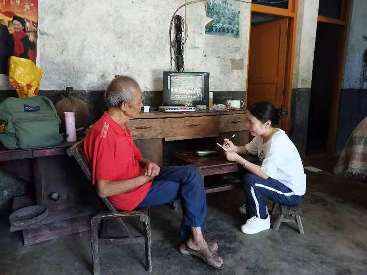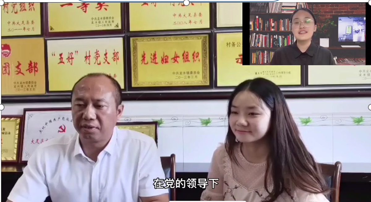 研行万里话初心,在这一主基调的引导下,实践队的队员用“话”的形式进行了党内初心的寻访。2020级英语语言文学专业的罗江敏与潘羽欣同学,以线上线下相结合的方式采访了来自重庆市大足区龙水镇高坡村的党委书记朱天友同志。