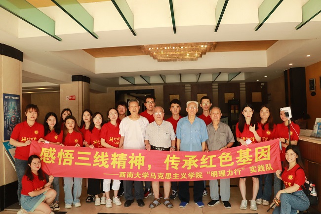 7月14日,实践队分组访谈了老兵和老党员,访谈对象包括直接参与816工程设计和建设的老兵以及曾在816厂工作的老党员。他们回顾了自己在816工程工作的经历,赞同后人用“艰苦创业、无私奉献、团结协作、勇于创新”来概括“三线精神”。同时,他们高度肯定了新时代我国的爱国主义教育和党史教育,也回忆了自己的入党经历,并鼓励大家从“三线精神”中汲取营养,真正做到“强国有我,请党放心”。访谈最后,老党员们一起庄严地重温了入党誓词。大家都被这一刻深深打动,纷纷表示要学习先辈们不畏艰难困苦的意志,积极为国家和民族奉献青春与热血!