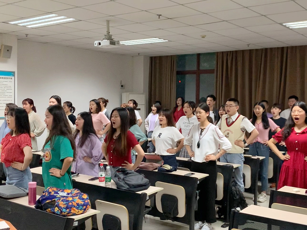 在排练中期,由于视频拍摄的限制,大家先前练习的和声都需要新的调整,指导老师选取了一个新的合唱简谱进行教学。面对新的挑战,同学们毫无懈怠,迅速开始适应新的改编,并在指导老师的指导下,学习如何调整面部表情、以及如何调整声音来表达歌词中的充沛情感。由于合唱人数较多,为了大家动作的整齐划一、配合歌词,负责人带领大家一句一句地纠正了每一个动作细节,力求在细节上做到完美。春种一粒粟,秋收万颗子。在一粒粒汗水与每一次细节练习的打磨下,最后的演出视频圆满录制,并获得了令人满意的佳绩!