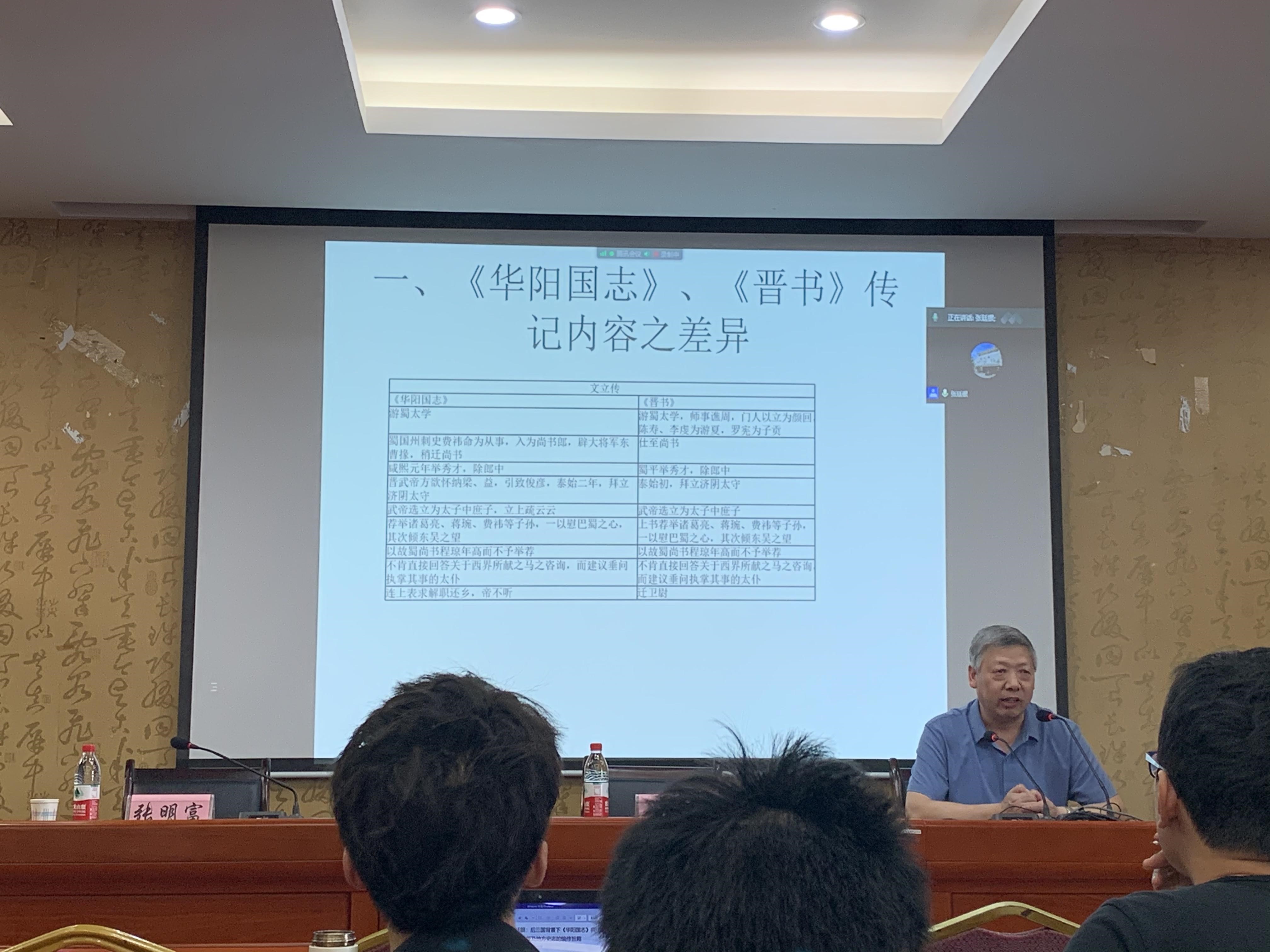 接着张教授向我们阐释了后三国时期地方文化向中央文化突进的现实背景,指出在政治、军事已有定局、地方上开始在文化和经济等方面与中央展开较量的“后三国”时期,魏国居于中心,歧视东吴、西蜀的地区文化,中央与地方的开始发生文化上的较量,这种较量一般分为直接抗争、拉近与中原历史的关系进行突进两种方式。《华阳国志》就是西蜀通过唱和的方式,体现巴蜀文化历史悠久,以此与魏国、东吴的文化进行较量。