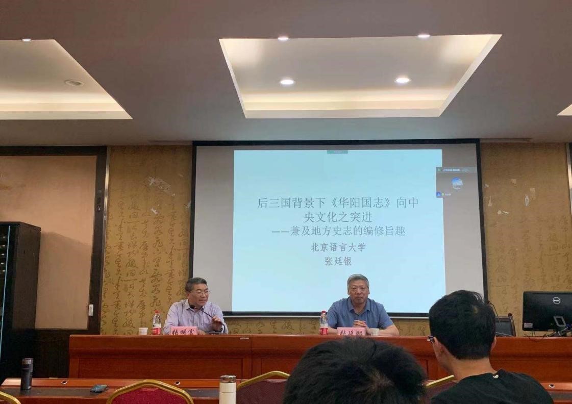 张廷银教授系北京语言大学中华文化研究院教授、博士生导师,著有《魏晋玄言诗研究》《方志所见文学资料辑释》《族谱所见文学批评资料整理研究》等。在《文学研究》《文学遗产》《文史哲》等刊物中发表论文若干。国家社科基金重大项目“历代方志所见文学文献整理研究”首席专家。本次讲座主要围绕着后三国背景下《华阳国志》向中央文化的突进进行讨论,了解《华阳国志》与《晋书》编纂中侧重点的不同之处,揭示地方志与官修国史不同的特性,以此对地方志与官修国史的不同作用和目的做出解释与说明。
