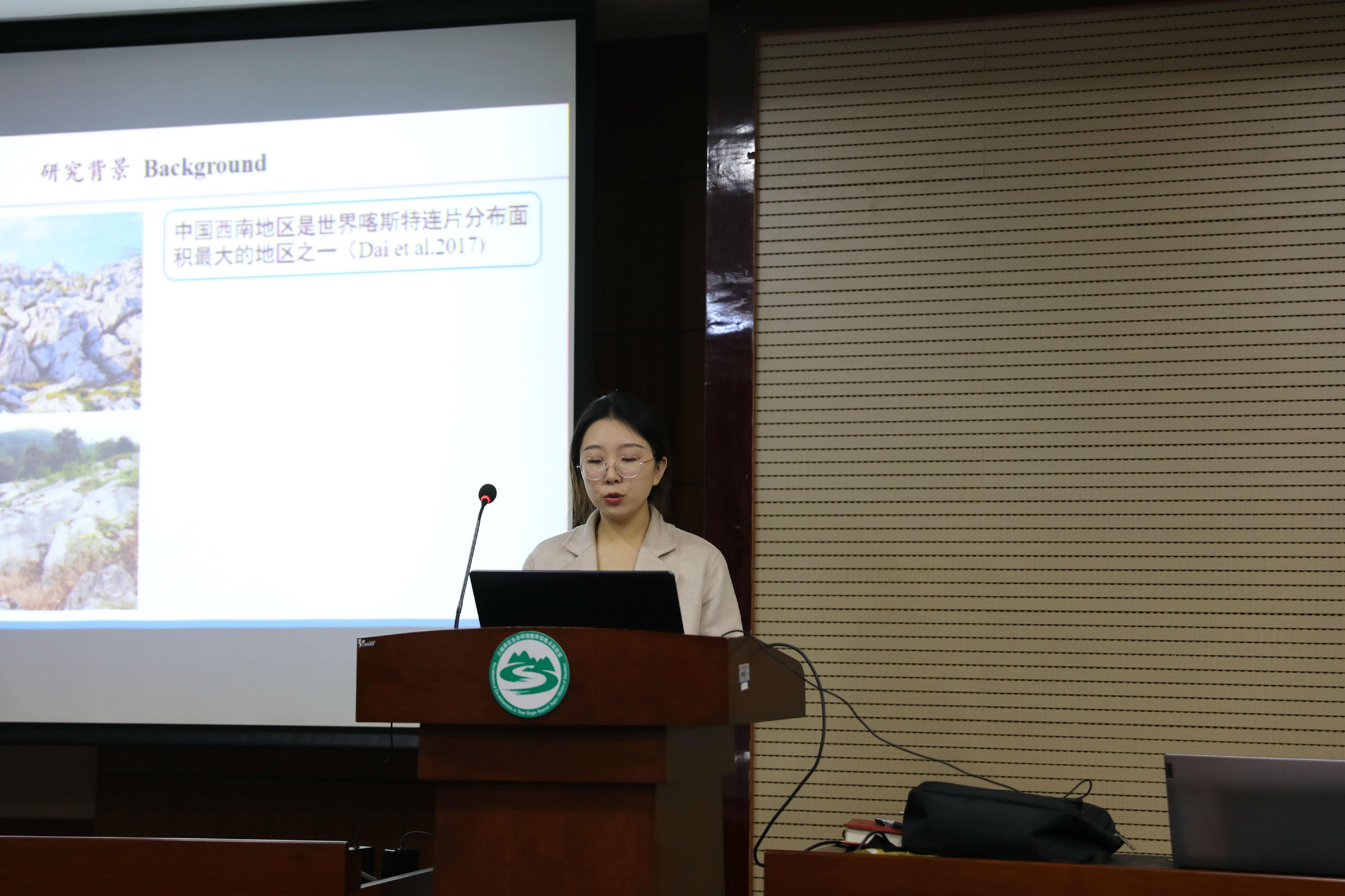 论坛的第二部分是由12位选手依次进行学术汇报,并由评委进行现场点评。其中博士研究生宋海燕通过PPT让大家深刻认识到了林下小径竹类对木本幼苗/树根际微生物群落的影响,她认为小径竹类覆盖能间接改变树种根际微生物群落的多样性并且不同树种根际微生物群落多样性和菌属组成及丰度有显著差异;硕士研究生吴姗以充满激情的语言讲述了河道型水库中植物繁殖体的水媒传播特征,让大家以另一种方式了解了植物繁殖体多变的传播途径,也让大家了解了繁殖体对于一个物种延续的重要性,她结论中比较有趣的一点是植物繁殖体可以向河道上游传播,这也为以后的这方面的研究奠定了一定的基础;硕士研究生刘俊婷以清晰的逻辑讲述了在水分亏缺的条件下桢楠幼苗对喀斯特不同岩溶裂隙生境的适应,她讲到桢楠幼苗可以调整自身来适应喀斯特地区岩溶裂隙生境的变化。