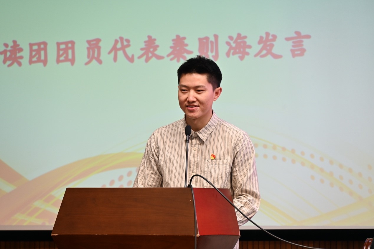 最后,研读团团员代表秦则海发言。他表示,在今后的工作中他们将秉执坚持党建带领团建,加强组织建设;立足学科使命,创建品牌活动;注重内外宣传,扩大活动影响的工作思路,在校团委和学院党委的领导下,在专家指导组的指导下,积极开展读书交流、学术沙龙、学术论坛、专家讲座、课题研究、对外宣讲等活动,积极践行研读团的初心使命。