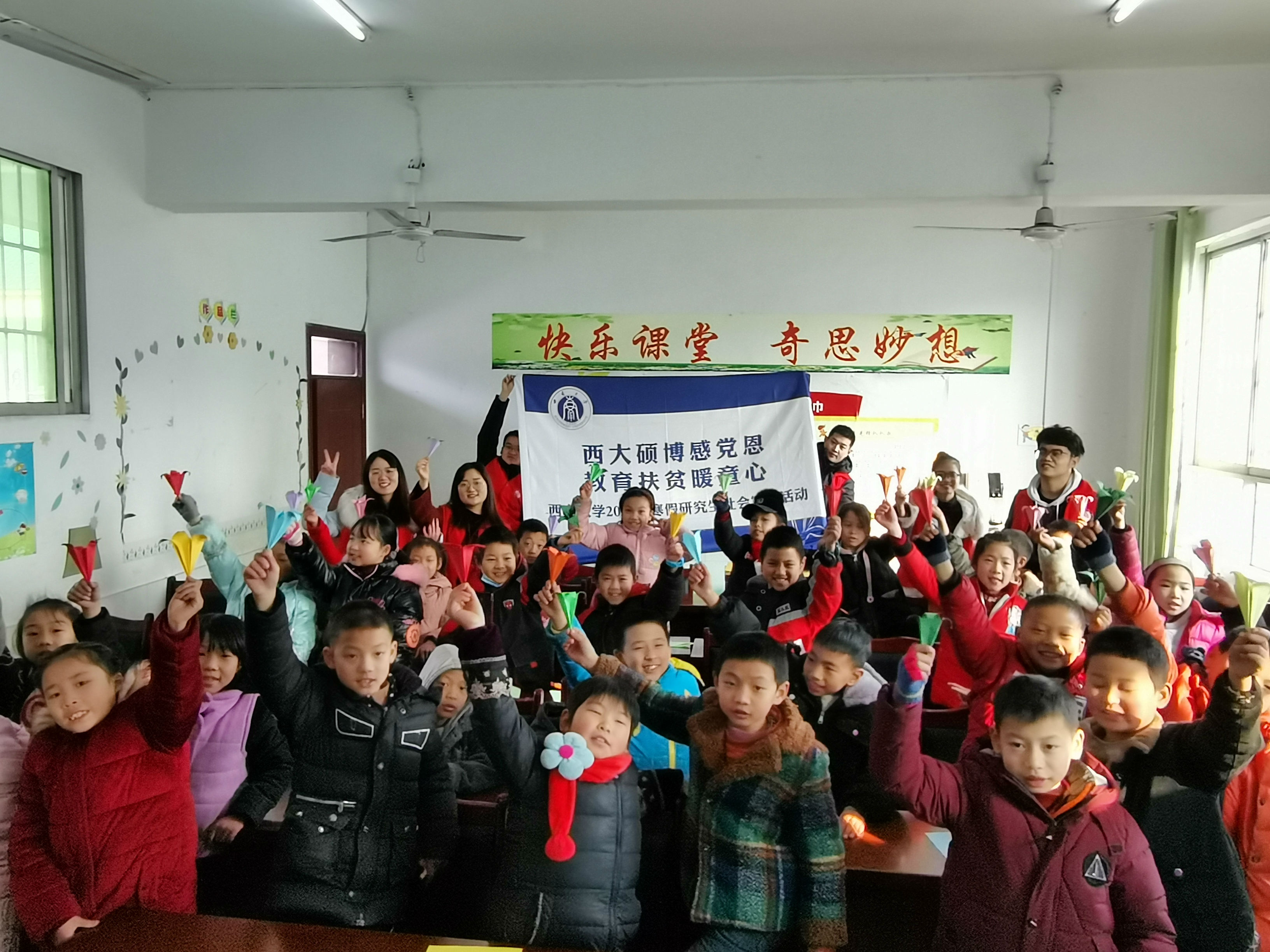 2021年1月18日,由PA视讯研究生党委工作部主办的“西大硕博感恩党,教育扶贫暖人心”活动继续热烈进行。数学与统计学院中山镇小学志愿服务队开展了趣味“四史”课堂和折纸课堂。