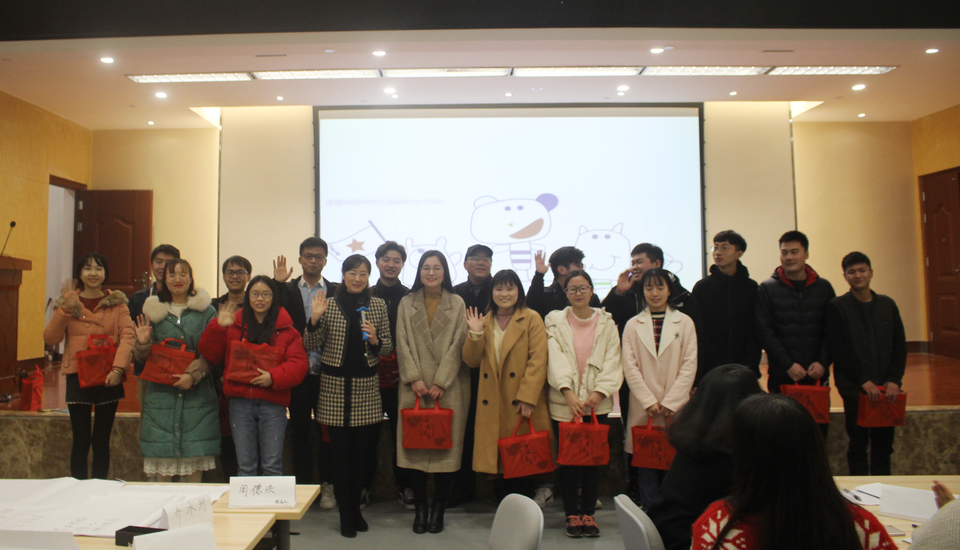 最后对表现最活跃的第二组和第八组两个小组进行奖励,由学院党委副书记黄庆洲为优秀小组的成员颁发纪念品并合影留念,培训会圆满结束。