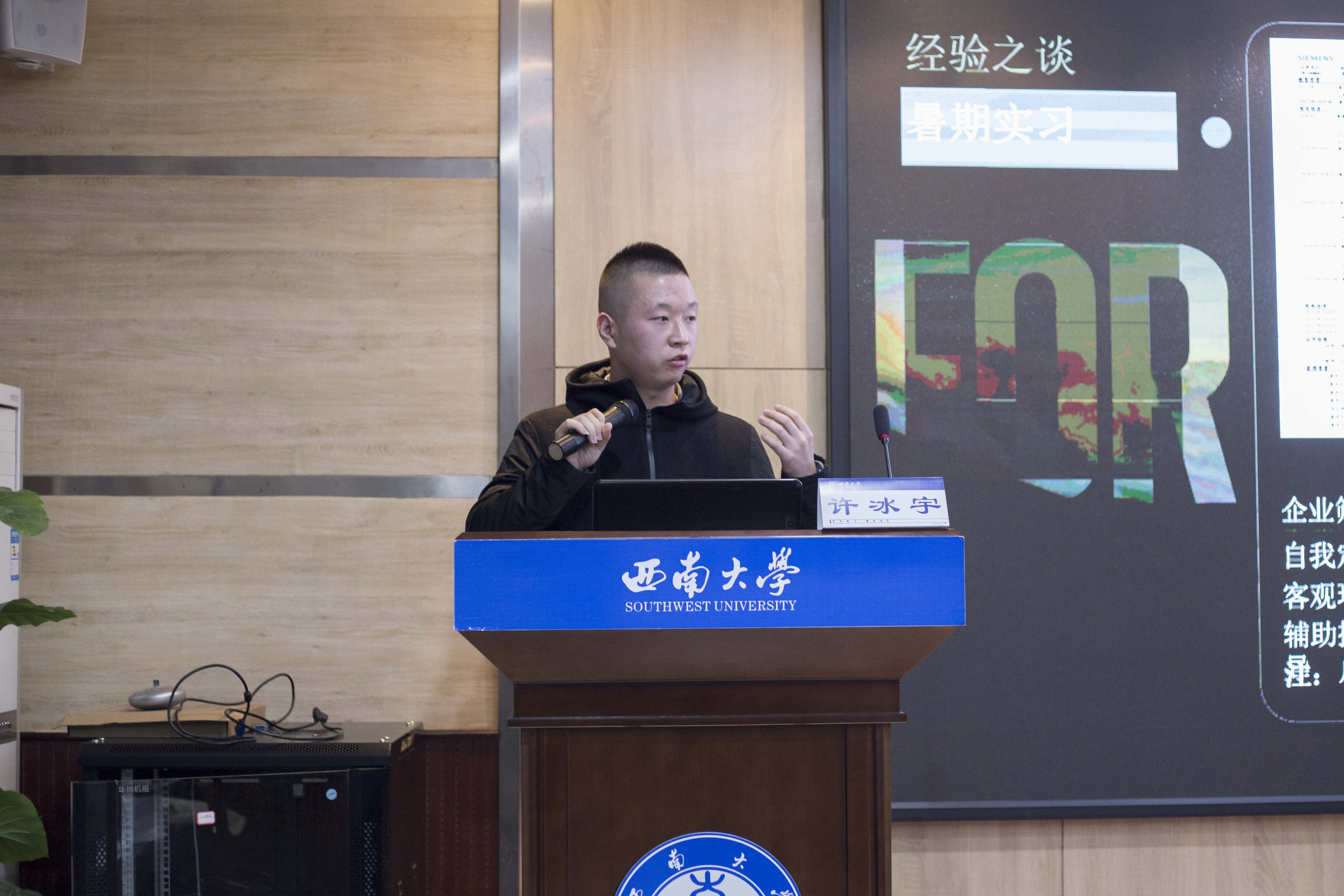 许冰宇则分享了自己的求职经历、考试准备和面试技巧并剖析了一些就业问题,强调了面试中与考官互动的“群面”环节,一定要扬长避短,既要发挥个人作用又要注重团队精神。在提问交流环节,同学们踊跃提问,老师们也耐心解答,消除了同学们内心的一些疑惑,使大家受益颇丰,感受良多。在同学们热烈的掌声中,本次分享会顺利结束。