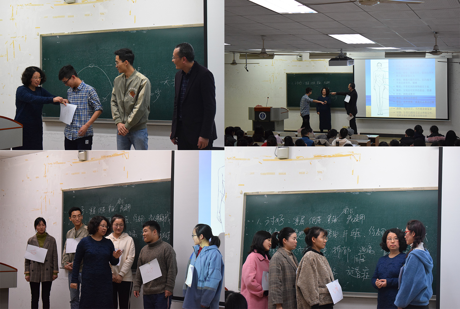 随后,叶海燕教授分别邀请老师及几名研究生同学上台进行情景展示,模拟日常学习生活过程中可能遇到的情景,生动形象地教导大家应该如何正确应对压力。讲座中氛围轻松,笑语不断,同学们感同身受,精彩处掌声不断。
