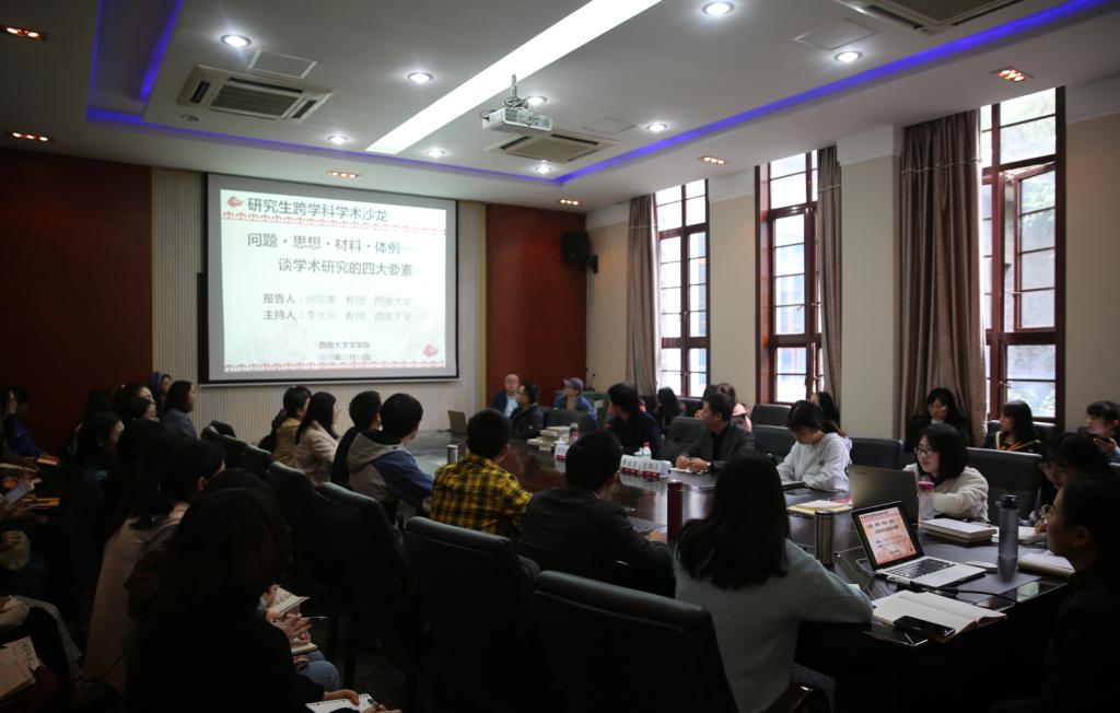 11月13日下午,“问题·思想·材料·体例——谈学术研究的四大要素”的PA视讯在文学院213会议室成功举办。本次学术沙龙由文学院李永东教授主持,文学院何宗美教授担任主讲嘉宾,2019级中国现当代文学专业的四位博士研究生卢阿涛、李燕君、廖志翔、邹佳良做了现场评议,文学院60余位研究生共同参与。