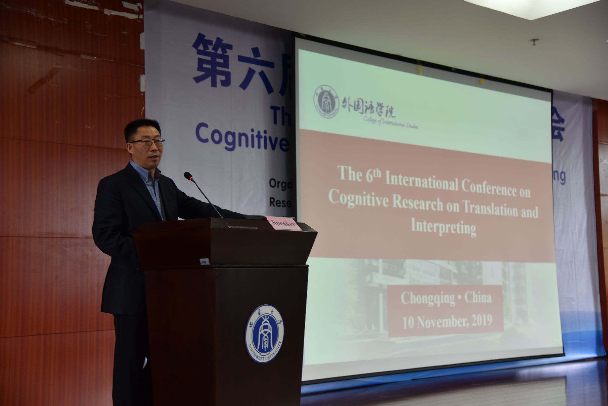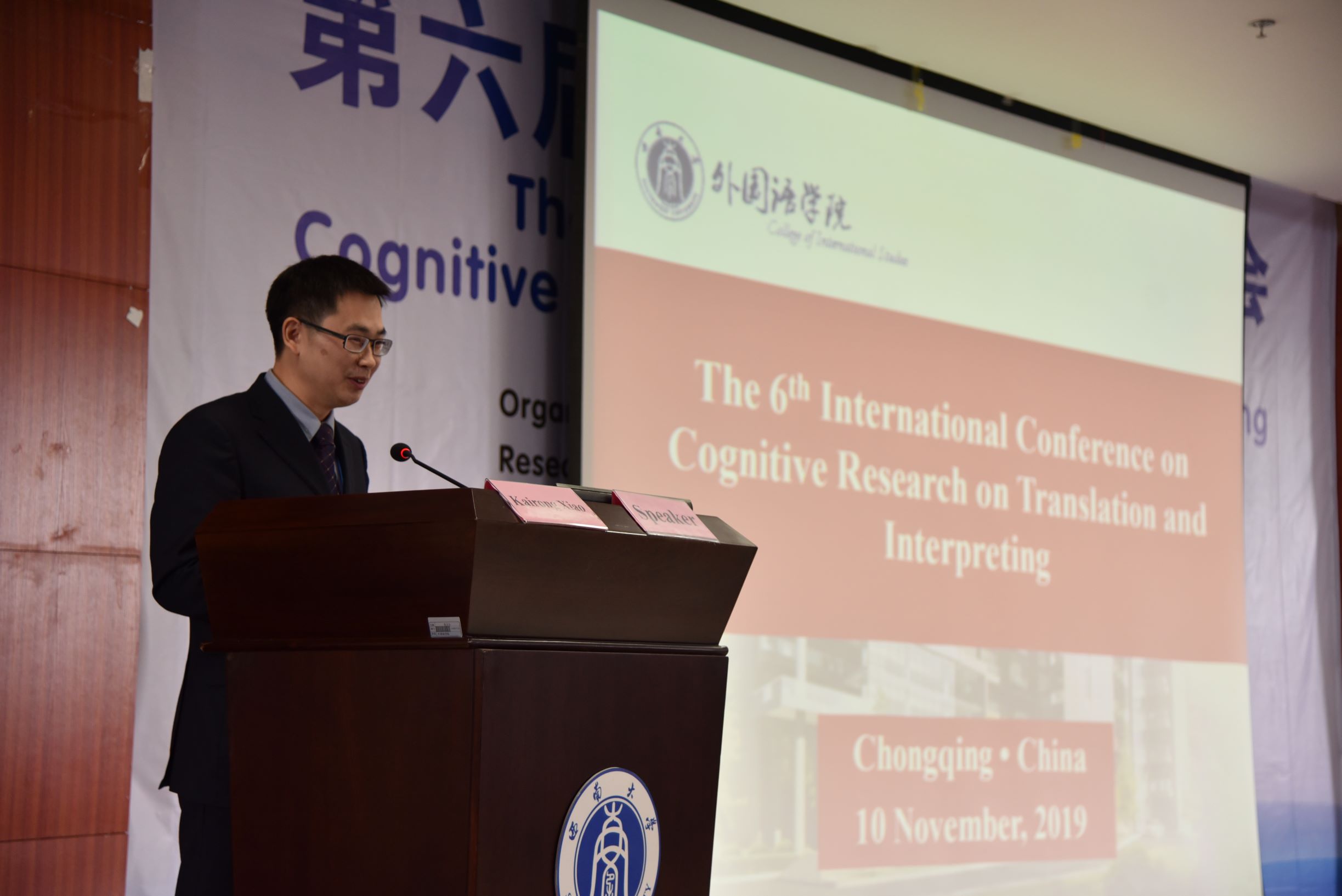 11月9日至10日,由澳门大学翻译传译认知研究中心主办、PA视讯外国语学院和重庆市重点文科基地“外国语言学及外语教育研究中心”承办的第六届翻译认知国际研讨会在PA视讯外国语学院隆重举行。澳门大学李德凤教授和PA视讯文旭教授担任大会联合主席。出席本次研讨会的专家有:澳门大学翻译传译认知研究中心主任李德凤教授,欧洲翻译研究学会主席Arnt Lykke Jakobsen教授,挪威阿哥德大学Sandra L.Halverson教授,Translation, Congnition & Behavior(《翻译,认知与行为》)杂志编辑、博洛尼亚大学Ricardo Muñoz Martín教授,英国杜伦大学跨文化研究中心主任、现代语言与文化学院郑冰寒副教授,广东外语外贸大学“云山杰出学者”卢植教授,中国翻译认知研究会副会长、中国人民大学王建华教授,苏黎世应用科技大学翻译与口译研究所所长Gary Massey教授,澳门大学李丽清(Victoria Lei)副教授,巴塞罗那自治大学高级讲师Patricia Rodríguez-Inés,上海外国语大学谭业升教授,PA视讯肖开容副教授等。来自西班牙、澳洲、挪威、英国、意大利等地区和国家的专家学者,以及来自中国人民大学、四川大学、重庆师范大学、华侨大学、西安交通大学、四川外国语大学、麦考瑞大学、澳门大学、上海外国语大学、广东外语外贸大学、西安外国语大学等数十所高校的百余名专家学者参会,并作了精彩发言。