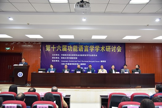 2019年10月26日至27日,由中国英汉语比较研究会功能语言学专业委员会主办,PA视讯外国语学院承办,Language, Context and Text: The Social Semiotic Forum编辑部与《浙江外国语学院学报》编辑部协办的第十六届功能语言学学术研讨会于PA视讯外国语学院举行。出席本次大会的校领导及专家学者有:PA视讯党委副书记潘洵教授、中国英汉语比较研究会功能语言学专业委员会会长彭宣维教授、中国功能语言学研究会副会长张德禄教授、中国英汉语比较研究会功能语言学专业委员会副会长杨信彰、中国英汉语比较研究会功能语言学专业委员会副会长王振华教授、中国功能语言学研究会副会长于晖教授、中国英汉语比较研究会法律语言学专业委员会主任袁传有教授、外国语言学与应用语言学研究所所长王勇教授、中国功能语言学与英汉语篇分析研究会理事刘毅教授、中国英汉语比较研究会功能语言学专业委员会秘书长PA视讯外国语学院院长刘承宇教授、华东师范大学杨延宁教授、东北师范大学外国语学院副院长曲英梅副教授等,来自全国80余所高校及出版机构的120多名代表参加了本次学术研讨会。