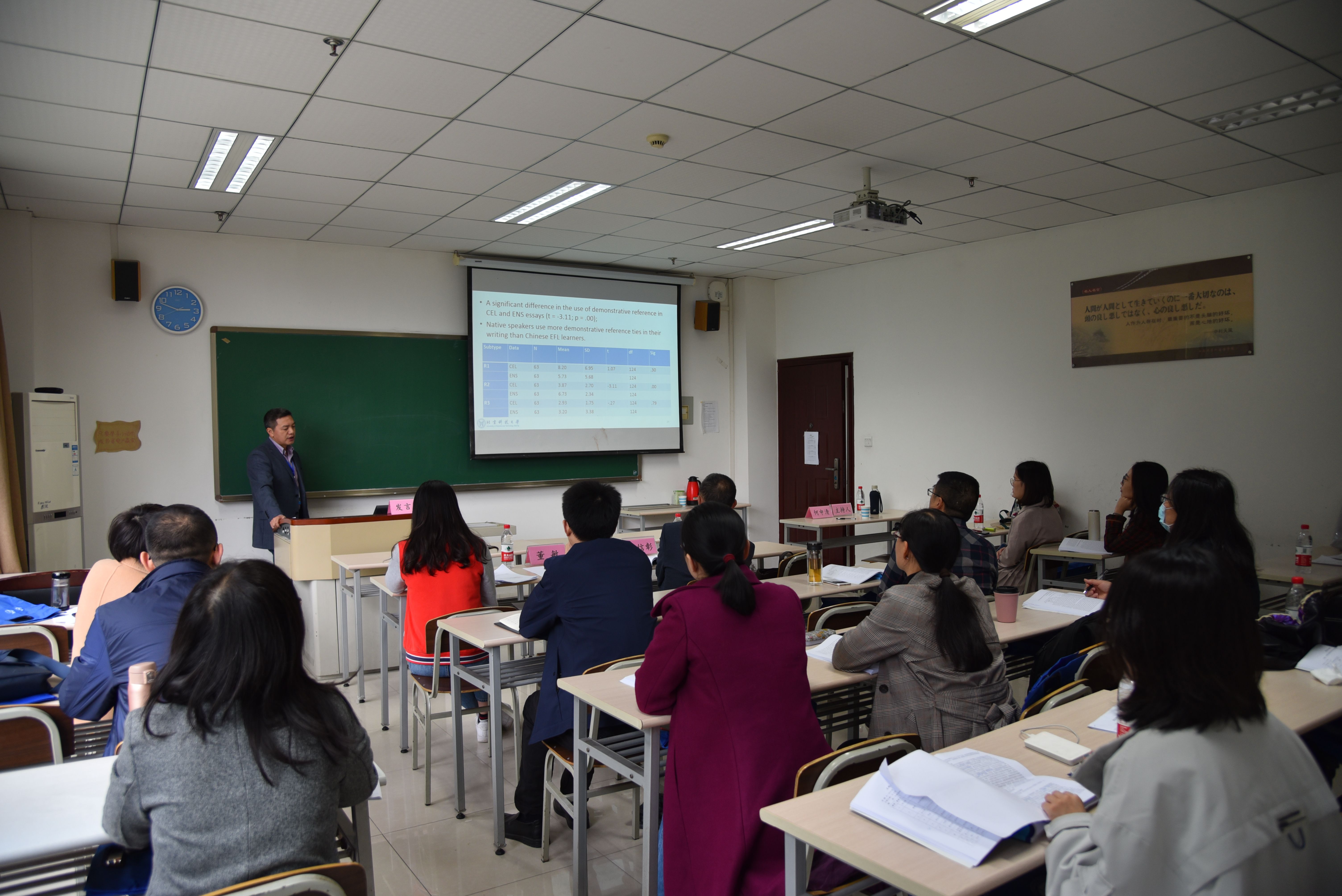 10月26日晚上,法律语言工作坊于外国语学院307会议室召开。广东外语外贸大学袁传有教授带领的研究团队从系统功能语言学视角对法律语言的立场建构、多模态特征、司法推理等方面进行了细致分析和探讨,从多个方面展示了系统功能语言学在法律语言学研究方面的热点和前沿