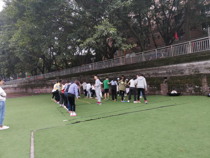 运动会上,8个小组的同学分别在7个小项目上展开角逐。在激烈的乒乓球比赛后,运动会正式拉开帷幕。紧随其后的羽毛球比赛更加精彩绝伦,参赛者都为自己小组的荣誉而拼搏。“螃蟹跳大绳”、“翻滚吧板凳”、“越野棋盘”等项目充分展现了小组成员的团结互助,组员之间的彼此信任和默契配合让人惊呼不已。团体项目“妹妹大胆往前走”、“同心协力”更是将整个运动会推向了高潮,“团结就是力量”的运动精神在这里得到了最好的体现。