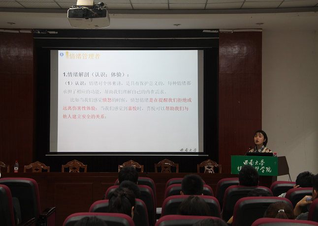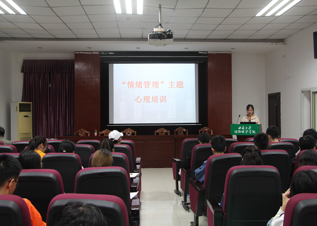 10月11日晚,植物保护学院主题心理培训活动在34教四楼会议厅成功举办。心理学部研究生谢晓欢以“情绪管理”为主题进行了培训。学院2018级、2019级全体研究生参加了此次活动。