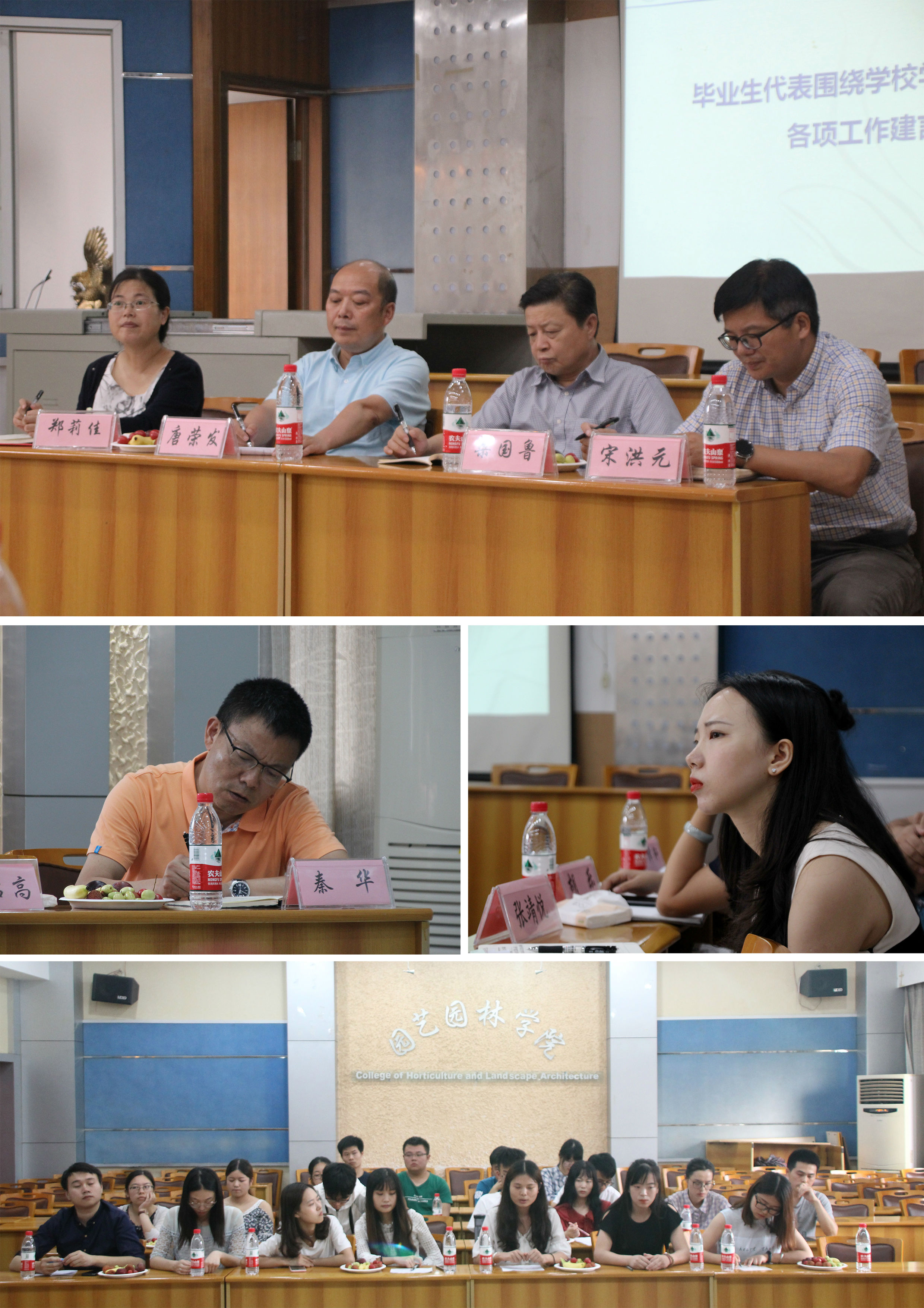 2019年6月21日下午,园艺园林学院2019届毕业生代表座谈会在33教学楼召开。园艺园林学院党委书记唐荣发、院长梁国鲁、党委副书记郑莉佳、副院长宋洪元,以及学院分管学生工作的各位老师和二十多位毕业生代表参与本次座谈会。座谈会由郑莉佳书记主持。