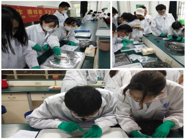 活动伊始,研会成员为各参赛队员详细介绍比赛流程和规则。本次比赛分为两个环节,第一部分为实验操作大比拼,涉及动医、动科、水产3个专业的实验操作。随着主持人“比赛开始”的宣布,各参赛组迅速进行实验手操。首先进行的是兽医操作,实验老鼠在专业的动医同学手中被解剖,脏器被一一完整取出,随后进行的是饲料的鉴别和鱼的采血和数鳍式。比赛期间,大家通过自己的所学、所见、所思积极完成比赛,在保证完成的效率的同时,也确保着实验完成的质量。随着比赛规定时间的临近,各组陆续完成实操部分的比赛。