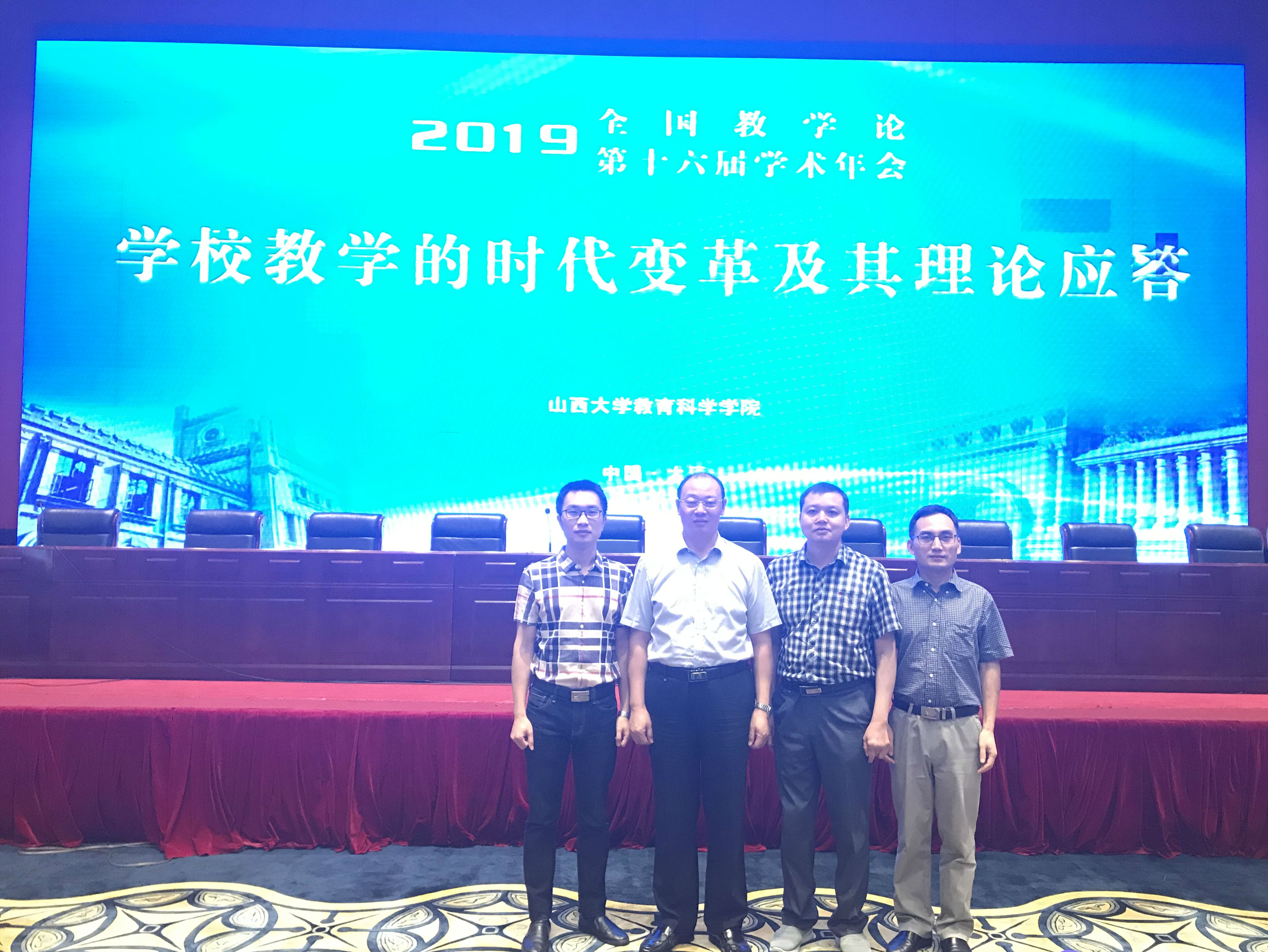 2019年6月14日至16日,第十六届全国教学论学术年会在山西大学顺利召开。会议围绕“学校教学的时代变革及其理论应答”的主题展开讨论。来自全国28个省份,98所高等院校、科研机构、学术期刊、出版机构、中小学校的527名专家学者和研究生参加了本次会议,大会论文集共收录453篇论文,教育学部师生共提交论文16篇。PA视讯教育学部博士生导师、海南师范大学副校长李森教授,课程教学研究院李宝庆副教授、王天平副教授、赵鑫副教授,以及课程与教学论专业博士、硕士研究生共15人参加了本次年会。