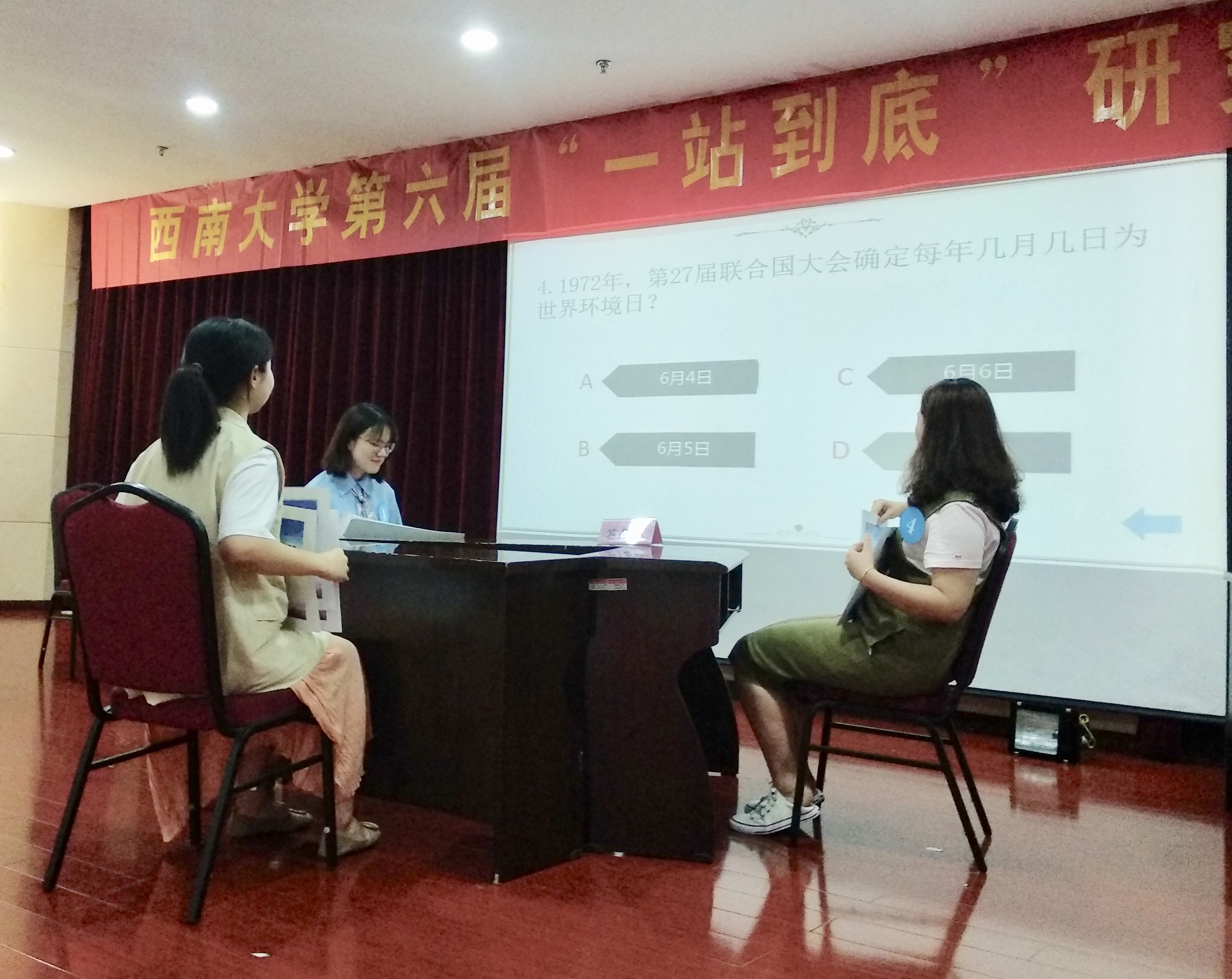 本届“一站到底”研究生知识竞赛由PA视讯研究生会主办,外国语学院研究生会、经济管理学院研究生会、教育学部研究生会、食品科学学院研究生会和政治与公共管理学院研究生会共同承办。赛事在启动之初就受到了同学们的广泛关注,共吸引了来自纺织服装学院、农学与生物科技学院、心理学部、教育学部、物理科学与技术学院、园艺园林学院、外国语学院等近14个学院的70余支队伍参赛。