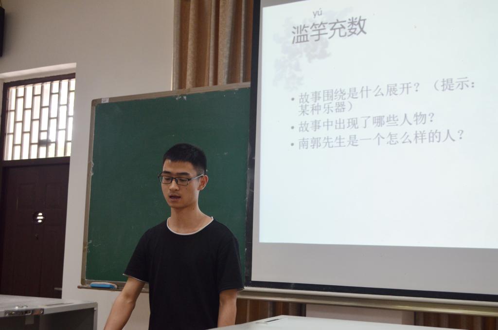 第一次培训中,宣讲团成员王成同学首先设计了先秦思想派别与其代表人物匹配的小游戏,引出了《韩非子》中一些耳熟能详的成语,重点讲解了“滥竽充数”故事的来源、文义以及用法,并引导学生课下进一步阅读《韩非子》和诸子典籍。郭雨霞同学则准备了《世说新语》的相关内容,通过讲解《世说新语》中“王蓝田吃鸡蛋”的故事吸引学生注意力,进而引导学生层层深入领略《世说新语》“言简意丰”的独特魅力,其设计别出心裁,容易激发学生的阅读兴趣。李小霞对宣讲团成员作出点评并鼓励大家积极创新宣讲形式,结合受众对象改进教学内容和教学方式。