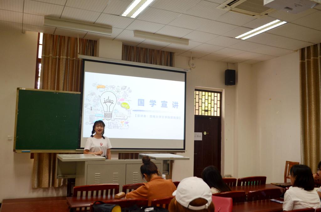 文学院国学宣讲团秉承阐释经典、促进传统文化传播的宗旨,积极促进中华优秀传统文化在校园、社区等地得以发扬,在彰显国学魅力的同时进一步提高研究生的综合素质水平。宣讲团曾先后走进朝阳小学、PA视讯国际学院等地开展国学宣讲活动,本学期国学宣讲团将继续走进PA视讯附属小学进行宣讲。为做好充足准备,宣讲团分别于5月17日和5月24日在文学院112教室开展培训活动,参加培训的有国学宣讲团成员和研究生会学术部成员,研究生会主席李小霞担任指导嘉宾。