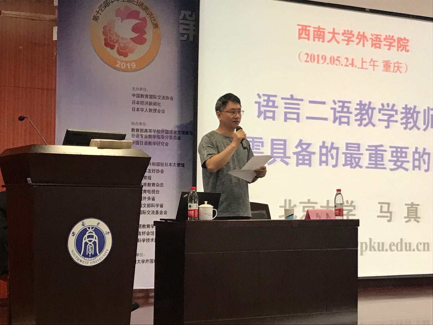 5月24日上午,北京大学陆俭明教授和马真教授应邀做客PA视讯外国语学院博雅讲坛,于外国语学院903学术报告厅分别做了题为“语言二语教学与语言本体研究的接口问题”和“语言二语教学教师所需具备的最重要的素质”的专题讲座。本次讲座由外国语学院硕士生导师成军教授主持,部分外国语学院教师、研究生到场聆听了讲座,多名文学院和国际学院的研究生也慕名而来聆听讲座。