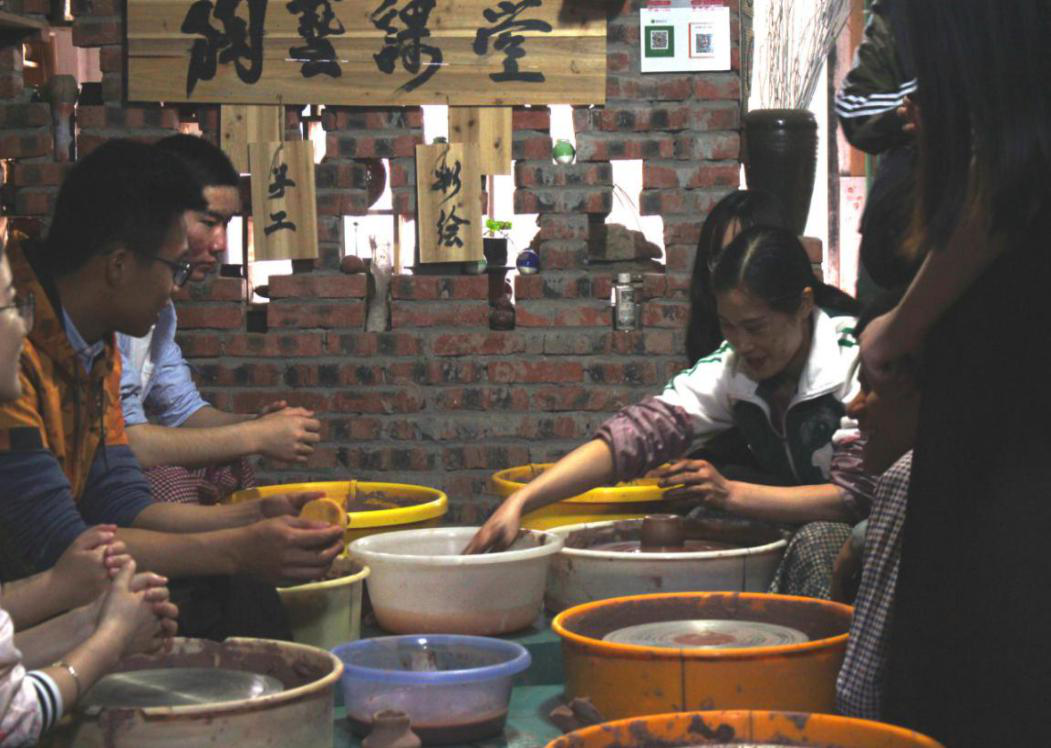 随后参观了安陶小镇,荣昌陶器即安陶,与江苏宜兴紫砂陶、云南建水陶、广西钦州坭兴陶一起,合称“中国四大名陶”。之后前往了安陶博物馆,在2010年初,安陶工艺被列为国家级非物质文化遗产保护项目。荣昌安陶博物馆是一座集中展示国家级非物质文化遗产“(荣昌陶)安陶”的公益性博物馆,以“传承•发展•创新”为展示主题,馆内收藏有近10000件自汉代以来的“安陶”文物和精品,真实、全面地反映了“安陶”的技艺传承和发展成果。最后同学们还亲自体验了陶制品的制作,收获颇丰。