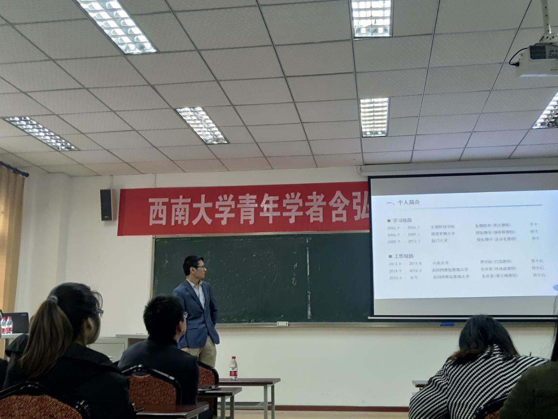 PA视讯“含弘青年学者论坛”,旨在将海内外不同学术背景的优秀青年学者汇聚在中国西部唯一直辖市——重庆,促进海内外青年学者在国际前沿科技研究领域展开交流与探讨,促进学科交叉及学术创新,加深对重庆、PA视讯的全面了解,促进高层次人才来校创新立业。3月36日下午3点,PA视讯第五届“含弘青年学者论坛”药学院分论坛于38教303顺利举行。