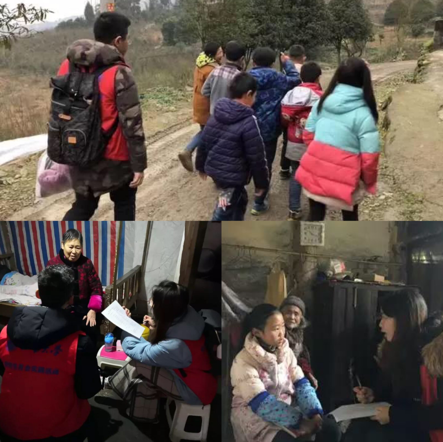 丰盛古镇虽然旅游业比较发达,但除部分城镇居民外,村民们主要还是以务农和外出打工为主。并且镇上的年轻力量少之又少,随处可见的大多是老人和孩童。针对这一现状,队员们争分夺秒地对接下来的家访活动进行了具体合理的安排。本次家访活动以留守儿童家庭访谈为主,就留守儿童的基本家庭情况、日常学习情况和不良行为情况等方面进行调查,了解他们在学校和家里的行为表现,以及留守儿童与监护人、教师、朋友之间的关系。根据以往的经验,晨星服务队队员分成三个小队,克服了冬日严寒和交通不变等问题,经过五天的艰苦跋涉,分别对街上村、油房村、梨坪村、石家村、桥湾村、双碑村等地的一百余名留守儿童及家庭成员进行了访谈和调研。