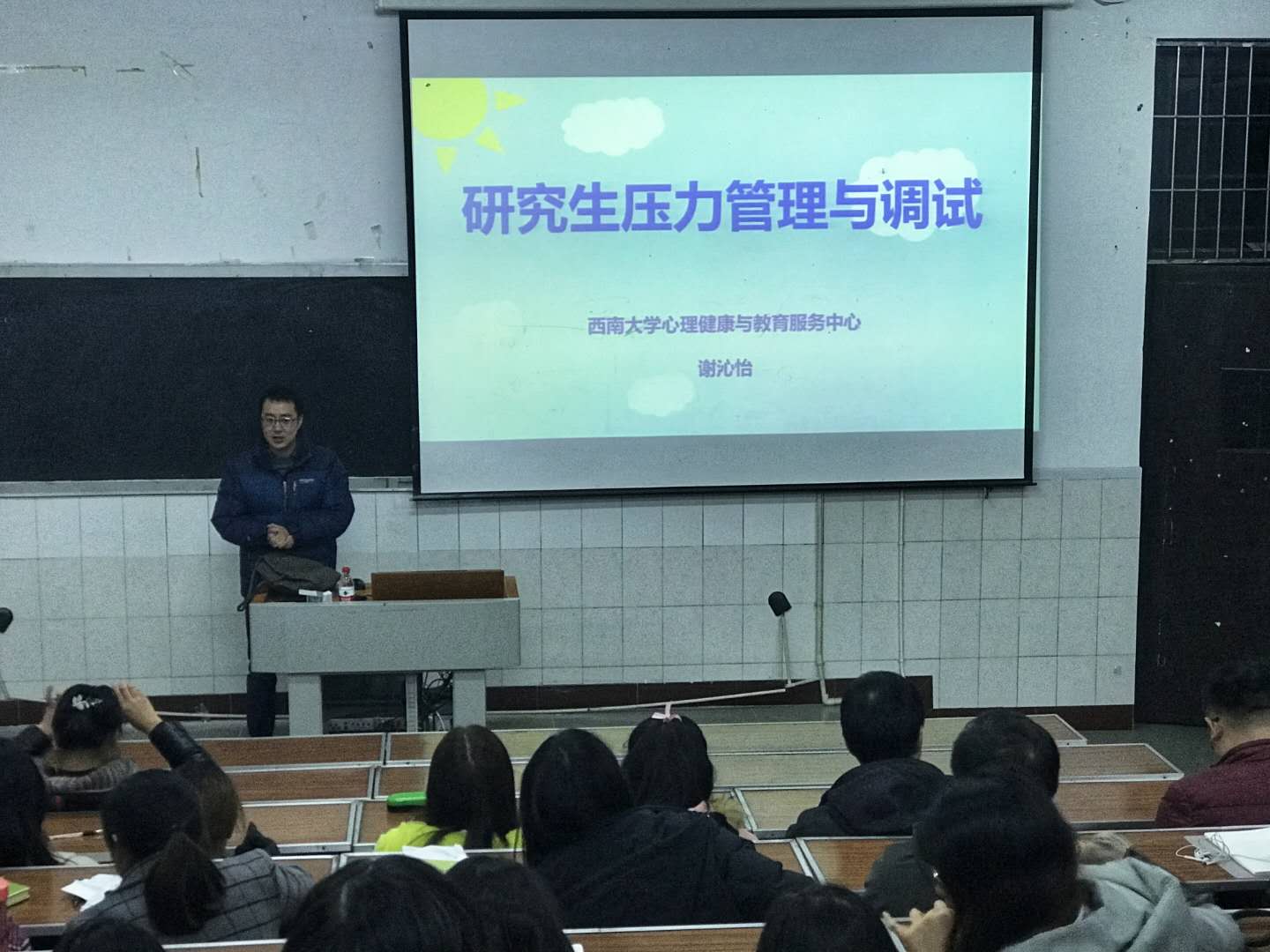 为了疏导研究生们的科研压力,树立健康的心理意识,1月7日下午,化学化工学院于老化院2321教室举办了《研究生压力管理与调试》主题心理讲座。本次讲座由学院党委副书记武宇坤主持,邀请到学生处心理健康教育与服务中心副主任谢沁怡老师为主讲嘉宾,学院柴雅琴老师、陈时洪老师及大部分研究生同学参加此次讲座。