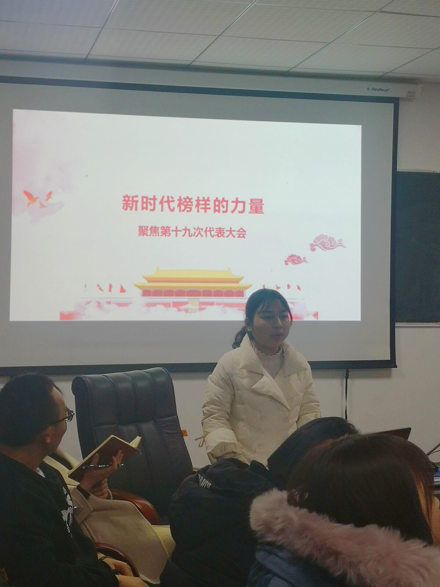讨论会分专题学习和自由讨论两个部分。首先,由组织部王亚利主持本次学习交流会并宣布活动开始。接着,由杨迎带领大家回顾第十九次代表大会会议主题,并学习新时代榜样力量,全体成员一同观看《榜样3》中关于贺星龙、李元敏、赵忠贤三位优秀共产党员的视频,视频中展示了新时代共产党人信仰坚定、心系群众、勇于担当、创新奉献的精神风貌,激发着不忘初心、牢记使命、干事创业、不懈奋斗的榜样力量。之后,又回顾了中共中央总书记、国家主席、中央军委主席习近平在改革开放40周年大会上发表的讲话的重要内容。