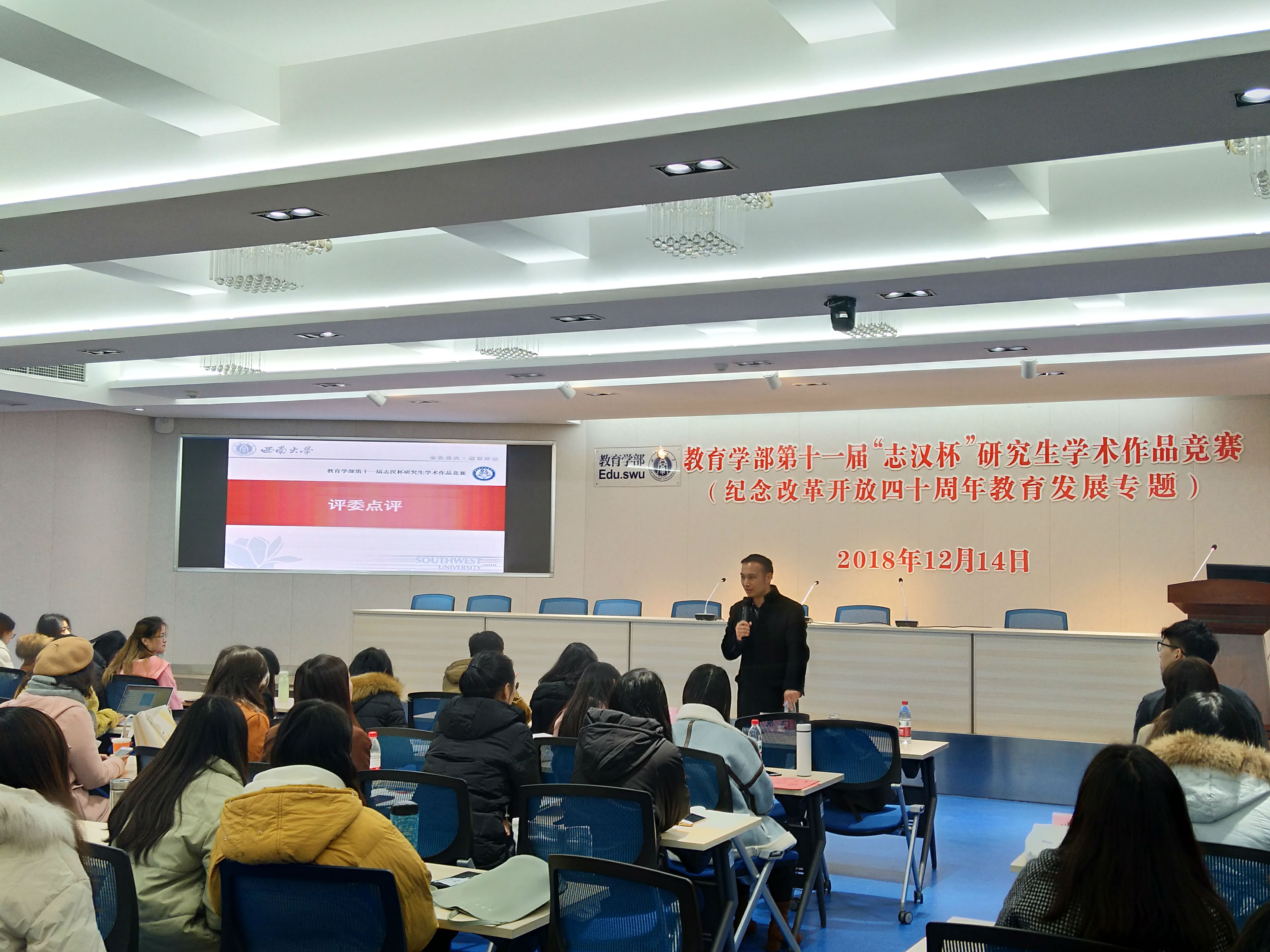 为纪念改革开放40周年,鼓舞师生不忘初心牢记使命,提升学部研究生科研创新能力,培养学生的刻苦钻研精神。12月14日上午9时,PA视讯教育学部第十一届志汉杯研究生学术作品竞赛在田家炳教育书院811卓越讲坛报告厅如期举办。