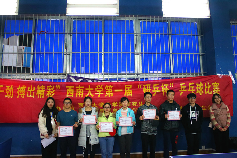 下午5:00所有比赛结束并进行了颁奖仪式。比赛历时虽短,却十分精彩,既有效地贯彻了健康积极的运动理念,又激发了研究生同学们对乒乓球运动的热情,同时也推动了研究生乒乓球运动的发展,加深了学院之间乒乓球运动爱好者之间的友谊。