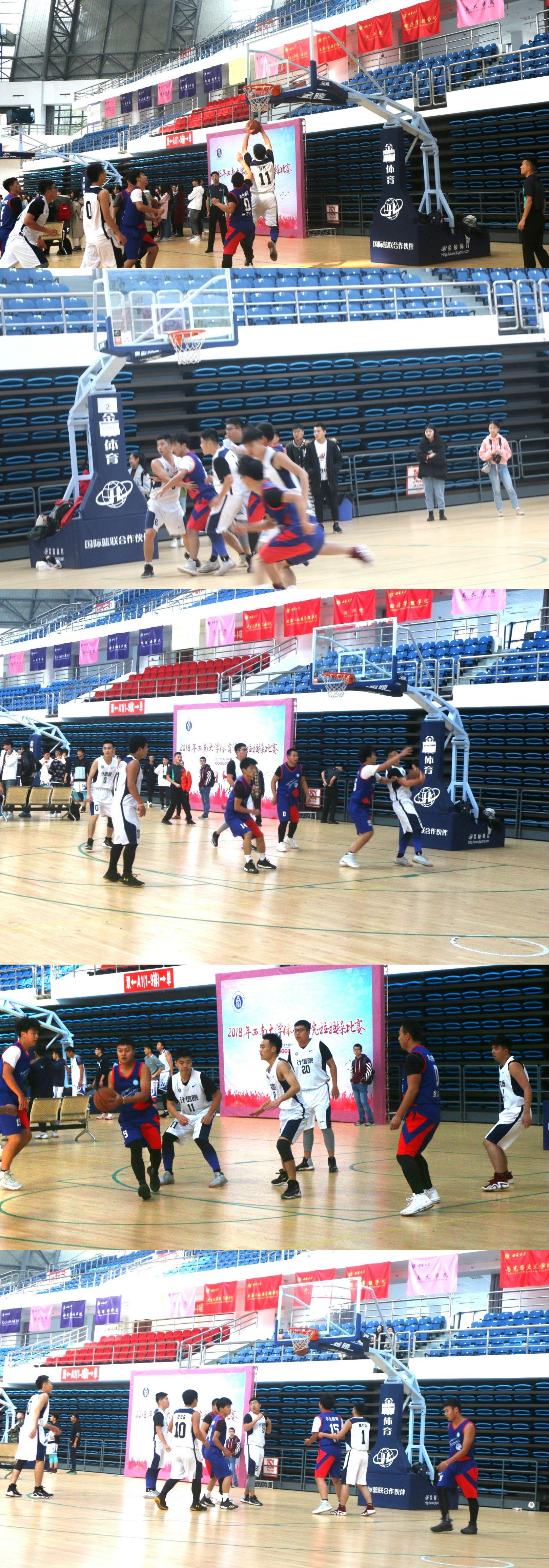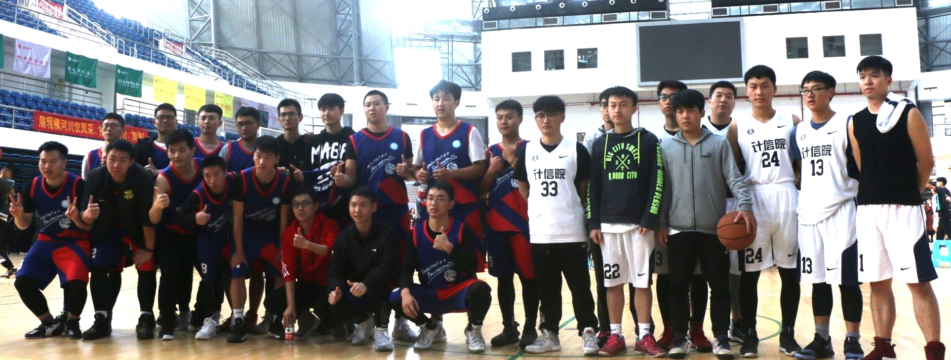 比赛前,身穿白色球衣的计信学子与身穿蓝色球衣的农生学子个个激情满怀,做好准备工作。比赛开始,球员们迅速投入比赛,在场上你争我夺,接连抢球,投球动作潇洒。每个动作争锋相对,帅气利索,双方实力相当,争夺异常激烈,比分多次拉平。