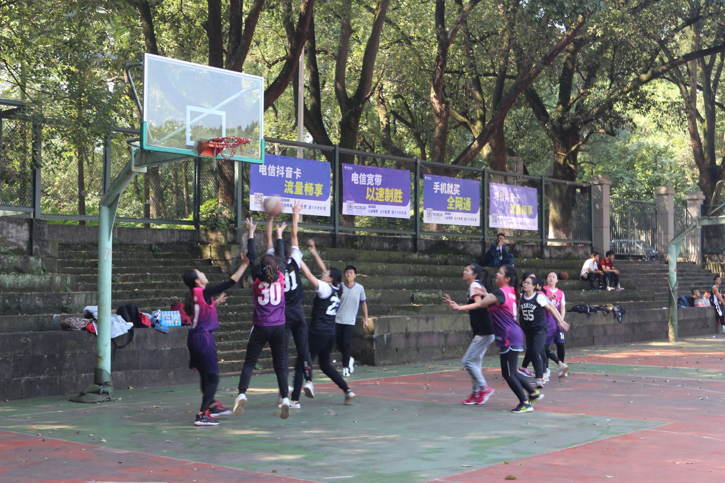 学院研究生女子篮球队与生命科学学院和农学与生物科技学院分为一组。女队队员在赛场上努力拼搏,充分展现了“巾帼不让须眉”的风采,在第一场对战生命科学学院的比赛中以13:5取得胜利。在第二场对战农学与生物科技学院的比赛中,我院女篮虽然不改以往的拼搏精神,但最终遗憾地以2:33败于对手的猛攻,止步小组赛。