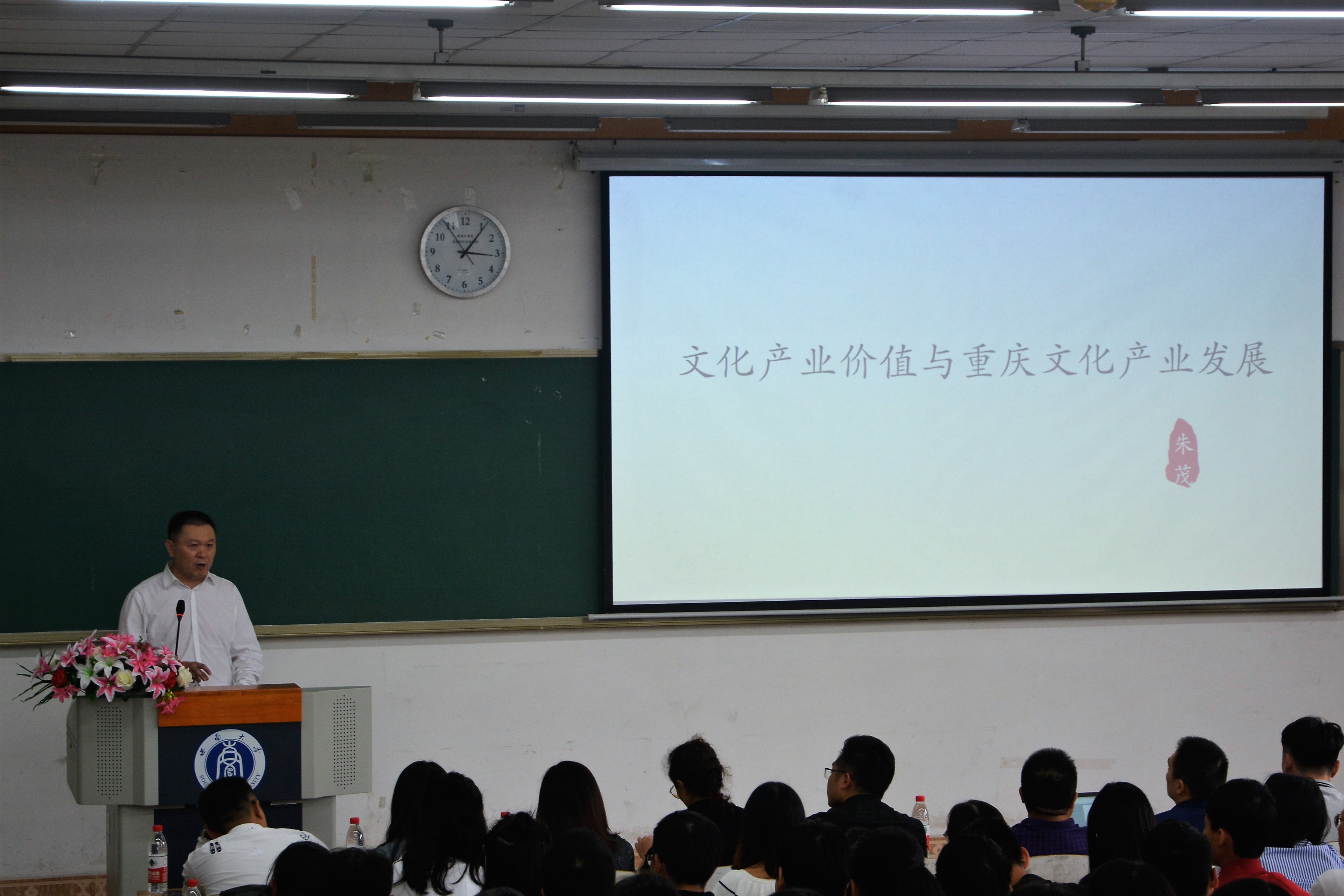 近日,重庆市文化委员会朱茂副主任莅临文化与社会发展学院作以《文化产业价值与重庆文化产业发展》为题的学术讲座。本次讲座属于雨僧讲坛系列讲座,由文化与社会发展学院院长潘孝富教授主持,学院全体师生积极参与,现场座无虚席,气氛热烈。