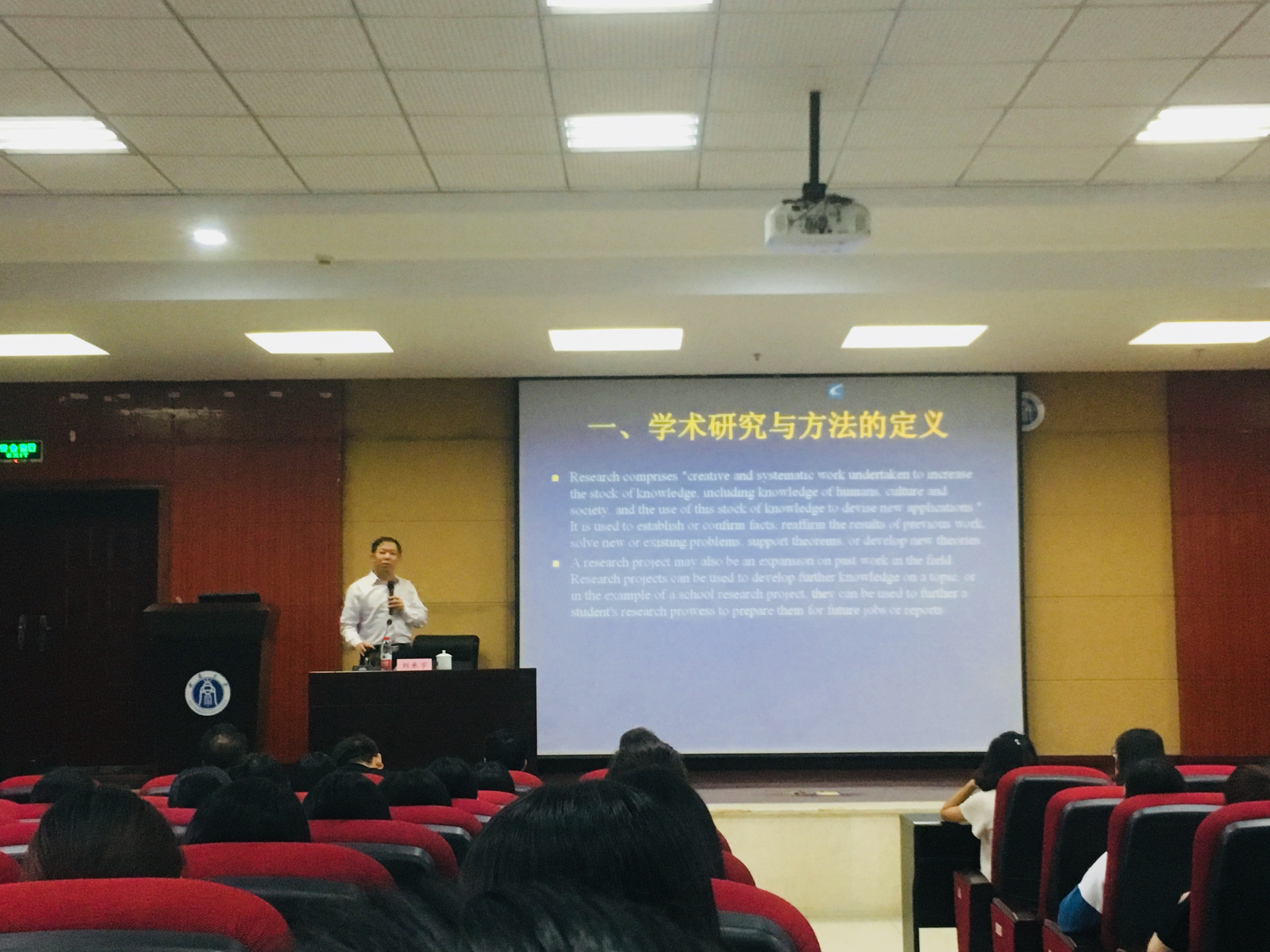 9月13日上午9点,外国语学院院长、博士生导师刘承宇教授作了题为“学术研究与方法”的讲座。刘院长结合自身多年从事学术研究与教学的经验,详细讲述了学术研究应如何进行选题和如何进行研究,为同学们未来的学术之路提供了方向和方法上的指引。