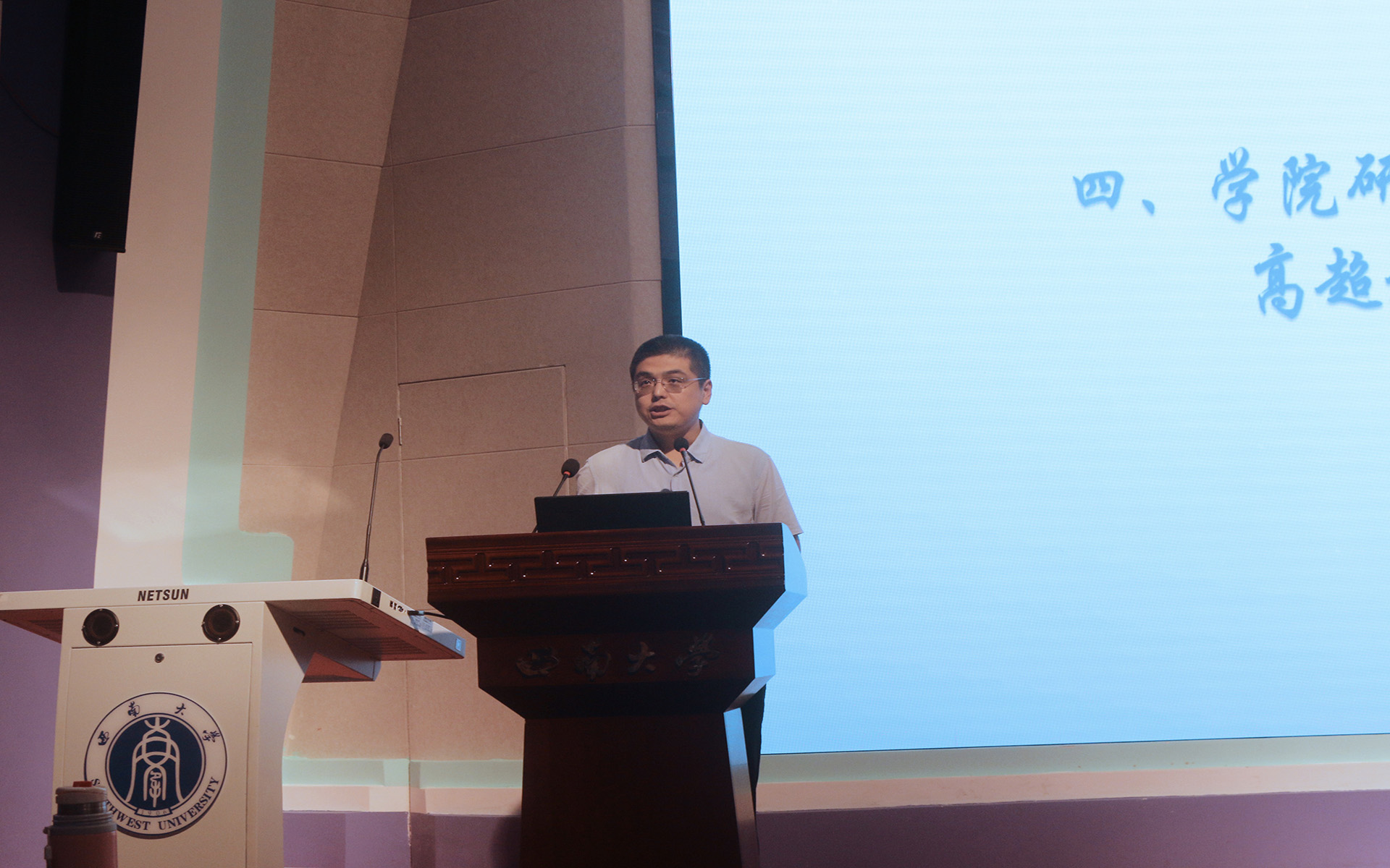 肖院长在典礼中从三方面发表了讲话,他希望新生应该首先明确研究生教育年限、培养环节和各项规章制度的要求。其次,肖院长指出学生的思维要从过去填鸭式转变为积极主动地模式,逐渐培养创新意识和能力,这就要在日常的文献阅读和听取学术报告中积累。最后还强调了研究生学术道德规范的重要性。